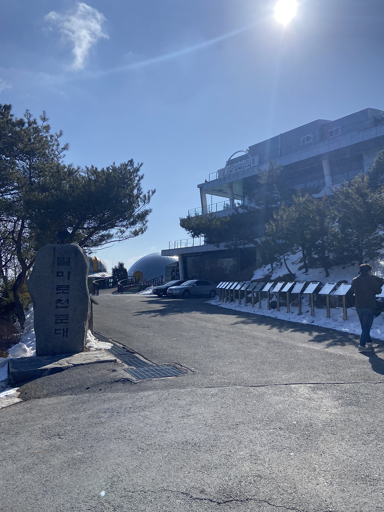 다음날 아침 짐을 싸서 체크아웃을 하고 별마로 천문대로 향했다. 별과 마루(정상), 고요할 ‘로’의 합성어로 ‘별을 보는 고요한 정상’이라는 뜻을 가진 천문대는 '영월 가볼만한 곳'을 검색하면 단골로 언급되는 장소였다. 공사 중이라 천문대 내부로 들어갈 수는 없었지만, 오히려 그래서 자가용으로 접근이 가능했다. 3월 중순부터 개방한다고 안내가 되어 있었는데 그때는 반드시 셔틀버스를 이용해야 한단다.