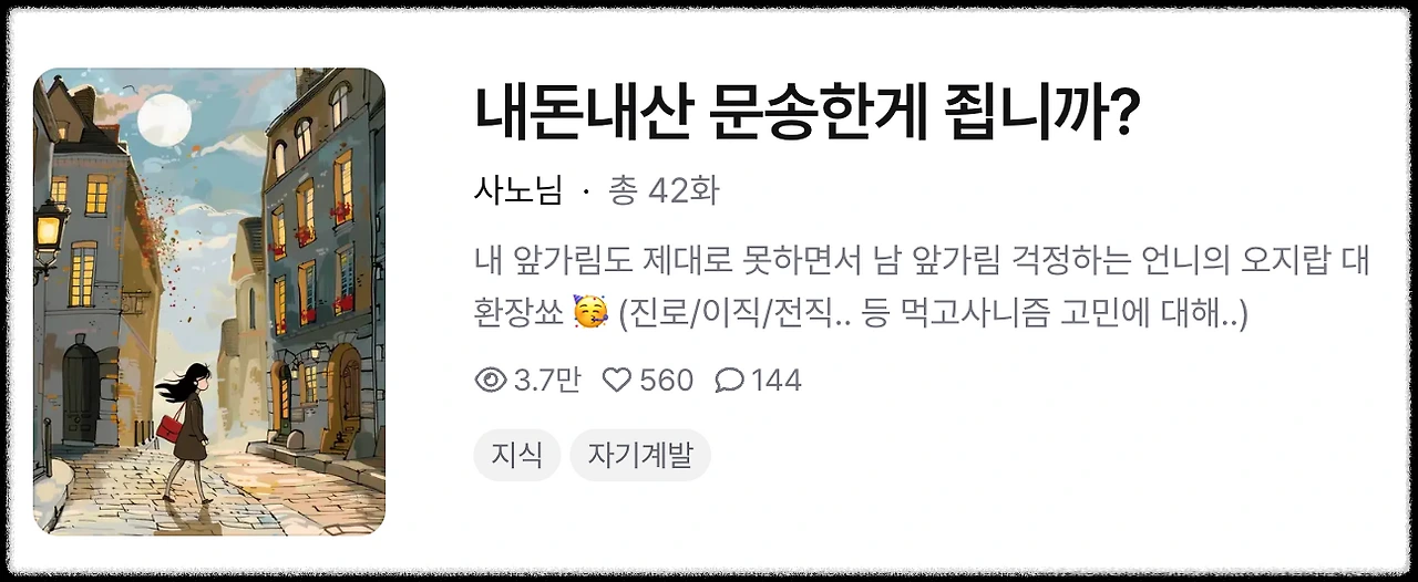 약 2년 간 포스타입 문과졸업생의 <잘>먹고사니즘 채널에서 연재한 모든 시리즈를 여기 브런치에도 배달합니다. 매주 목금토일 오후 9시에 포스트가 발행됩니다. 멤버십 가격은 3,900원으로 브런치 자체 내에서 일괄 적용하는 것으로 확인하였어요.