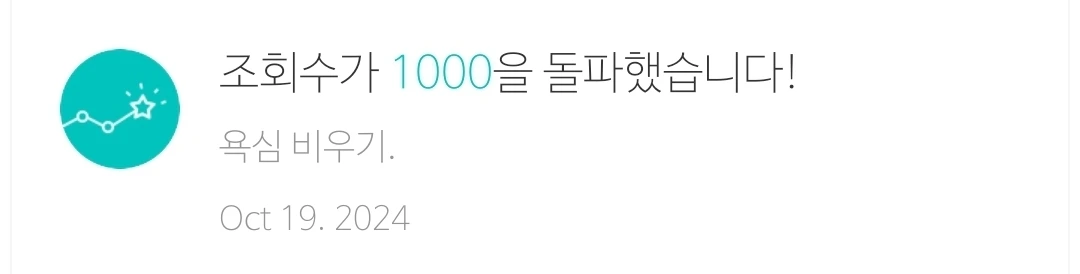 진동으로 되어 있는 브런치 알람이 갑자기 전달됐다. 궁금해서 앱을 곧바로 열어보니 “조회 수가 1000을 돌파했습니다”라는 알림이다. 처음 받아보는 메시지라서 생소했다. 해당하는 글의 제목은 《욕심 비우기》. 기억을 더듬어보니 2022년 2월 27일에 브런치 작가로 선정되고 며칠이 지난 3월 7일에 터벅터벅 길을 걷듯, 욕심 없이 쓴 글이다.