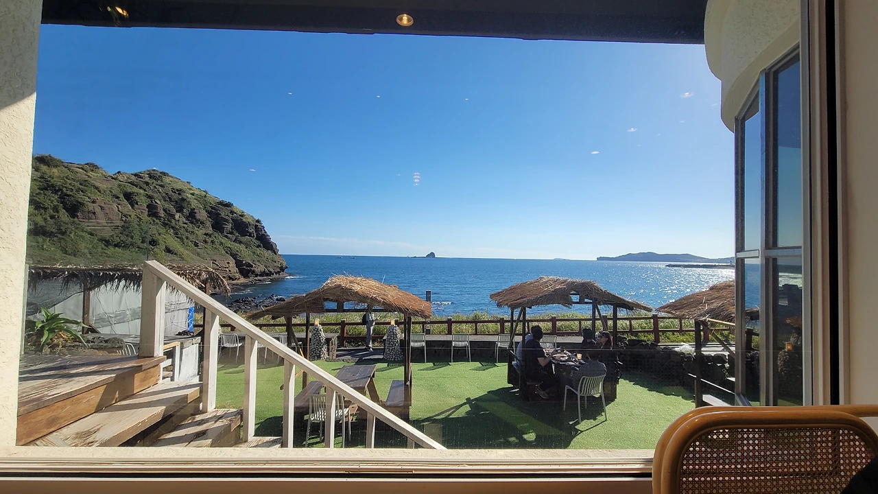 카페 밖 초가 지붕 아래, 사람들의 이야기와 웃음소리가 바다가 들려주는 작은 속삭임에 섞여 든다. 분명하게 들리지 않지만, 묘하게 마음을 채워주는 힘이 있다. 그냥 가만히, 그 자리에서 바다의 속삭임을 들으며 시간 속으로 빠져든다.