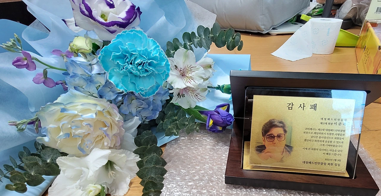 며칠 전, 임기를 마치며 감사패와 꽃다발을 받았다. 이름이 새겨진 감사패를 손에 쥐고 있자니, 지난 1년간의 순간들이 스쳐 지나갔다. 힘든 일도 있었지만, 그보다 더 많은 따뜻한 기억들이 가슴을 채웠다. 혼자가 아니라 함께였기에 가능했던 시간이었다. 나를 믿고 따라와 준 운영진들, 그리고 보이지 않는 곳에서 도와준 모든 이들에게 깊이 감사한다.