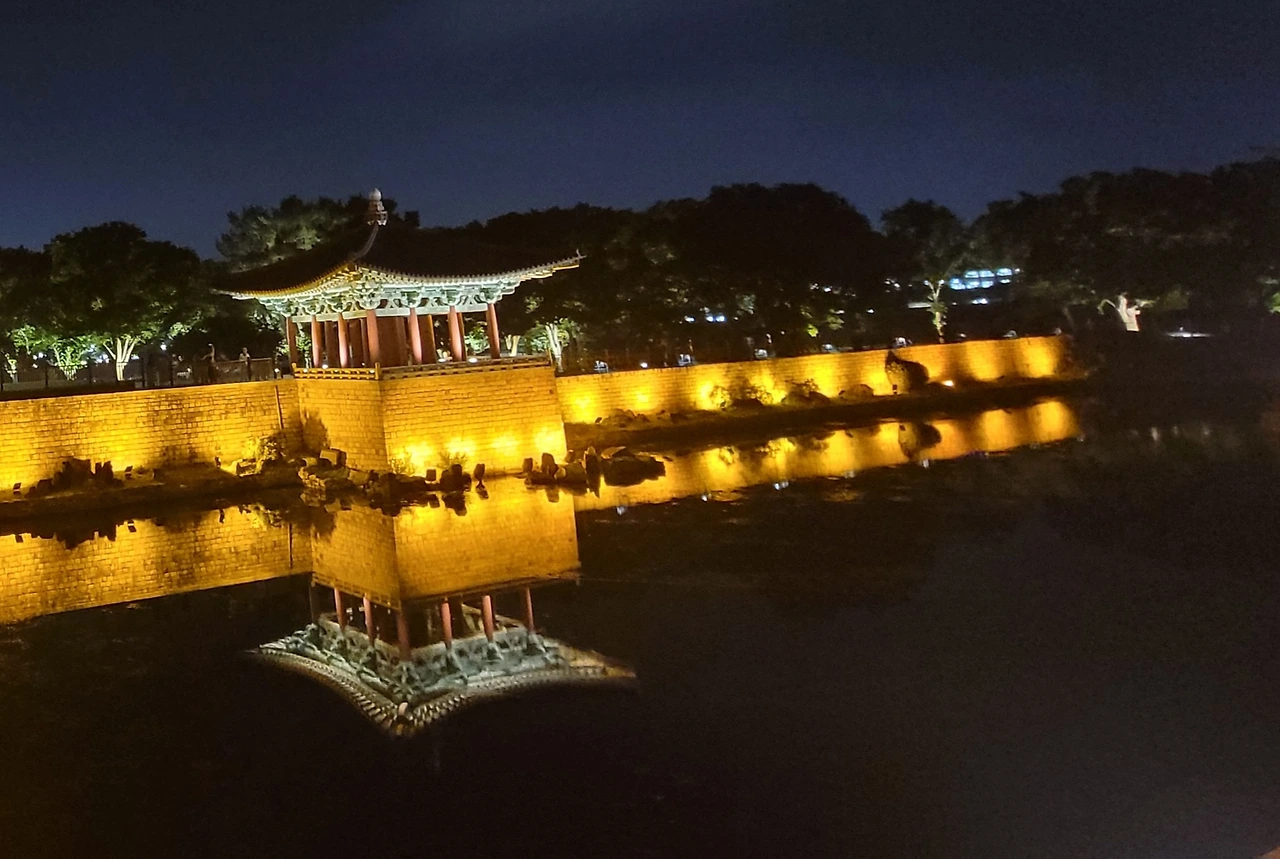 연못가 벤치에 잠시 앉아 있자니, 빛이 물결 따라 흔들리며 마음속 번잡함마저 말끔히 씻겨 내려간다. 고요한 밤, 그 찰나의 아름다움 속에서 나는 어느새 천 년 전 신라의 정원을 거니는 귀족이 된 듯한 기분에 잠긴다.