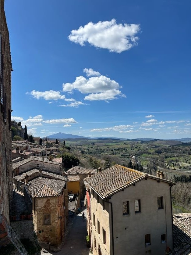 커피를 마시고 친구와 동네 산책길에 나섰다. 이리로 가면 성당 같은 게 나온다며, 산책 치고는 너무 오르막이 아닌가 싶은 길로 데리고 갔다. 아 그러고 보니 날씨가 아주 좋댔지? 로션도 안 바르고 쫄랑쫄랑 따라나선 나는, 상식 부족으로 마이애미 3개월 출장 동안 선크림 없이 하늘을 마주하다 망했던 시간들이 떠오르며, 이태리 여행 최고의 날씨, 최고의 햇살을 아무 방어막없이 받아들였다. 걸어가던 길에 오밀조밀한 중세도시가 보였는데, 나중에 알고보니 거기가 몬테풀치아노였는데, 알고 있는게 어제 간 오르비에토밖에 없다 보니, "아 저기가 어제 간 성당이고, 저기가 어제 본 종탑이고" 하면서 대화를 나눴다.