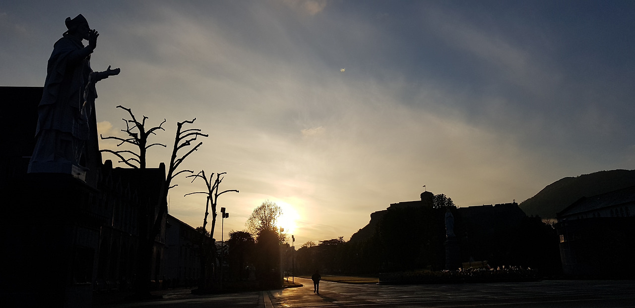 멀리서 떠오르는 태양이 루르드 곳곳을 하나씩 밝히고 있었다. 성수기를 맞이한 루르드에서 이렇게 조용한 시간을 즐길 수 있다니 감사했다. 물 한 통을 가득 뜨고 성지 곳곳에 내 발자국을 남겨두고선 숙소로 돌아 나왔다.