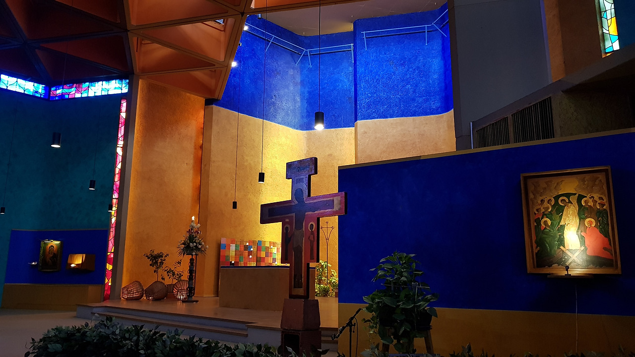 어느새 뉘엿뉘엿 지는 해를 따라 떼제로 저녁기도를 갔다. 지난주처럼 십자가 가까이에 자리를 잡았다. 부활을 앞둔 십자가 예식 때, 내 옆을 지켜주었던 홍콩 친구 리타와 특유의 밝은 미소에 한글까지 포함해 떼제 노래 편지를 전해준 주황 뽀글머리 봉사자, 떼제의 첫날부터 지금까지의 순간들이 필름처럼 머릿속을 지나갔다.