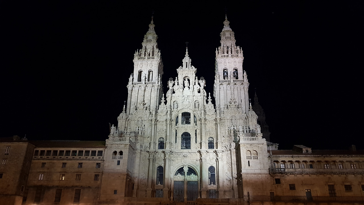 어느새 어둑해진 하늘과 조명을 밝힌 구시가지의 골목을 지나 넓은 광장과 그 앞에 야고보 성인의 유해가 묻혀있다는 산티아고 순례길의 종착지, '산티아고 데 콤포스텔라 대성당'이 모습을 완전히 드러냈다.
