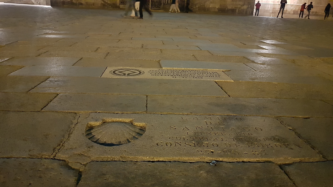 내가 주저앉은 그곳에는 순례자 표식, 마지막 조가비 모양이 성당을 가리키고 있었다.