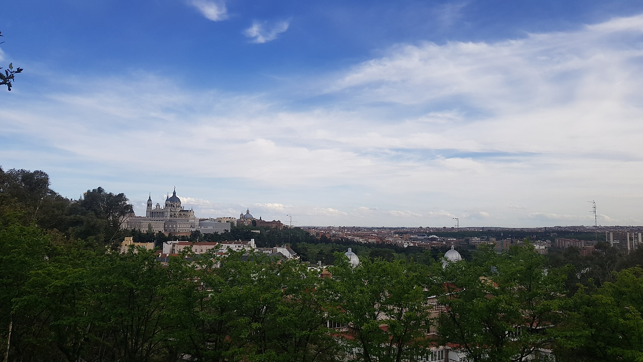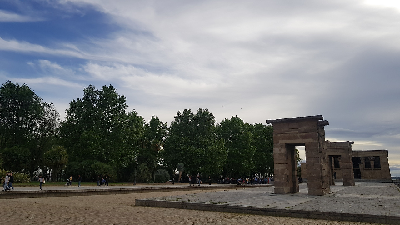 사람들이 몰려있는 곳을 가봤더니 저 멀리 알무데나 성모 대성당 첨탑과 마드리드 왕궁이 보인다. 그리고 그 공원 한가운데에 서있는 것이 바로 이집트에서 옮겨온 '데보드 신전'이다.