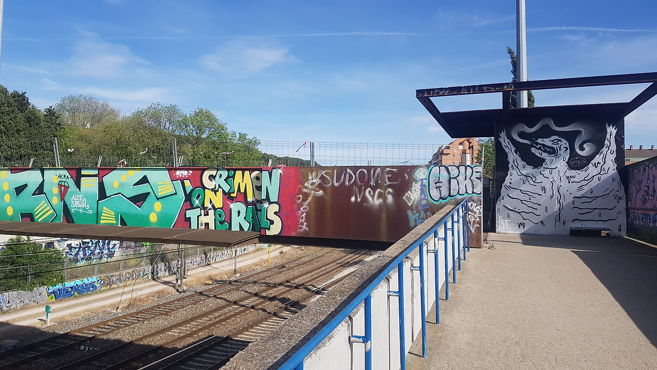 안토니오 성당은 도심 외곽 쪽에 있어서인지 주변에 사람들이 별로 없고 분위기도 으슥했다. 성당에서 나온 관광객 5명 정도를 따라서 거리를 두고 함께 걸었다. 공원을 통과해 마주친 첫 번째 난관은 기찻길, 지도를 확대해보니 그제야 제대로 보였다. 그라피티가 가득한 이곳을 건너지 않으려면 왔던 길을 되돌아가는 것 밖에 없었다. 다행스럽게 성당부터 따라 걸었던 사람들과 이곳까지 함께 건널 수 있게 되었다.