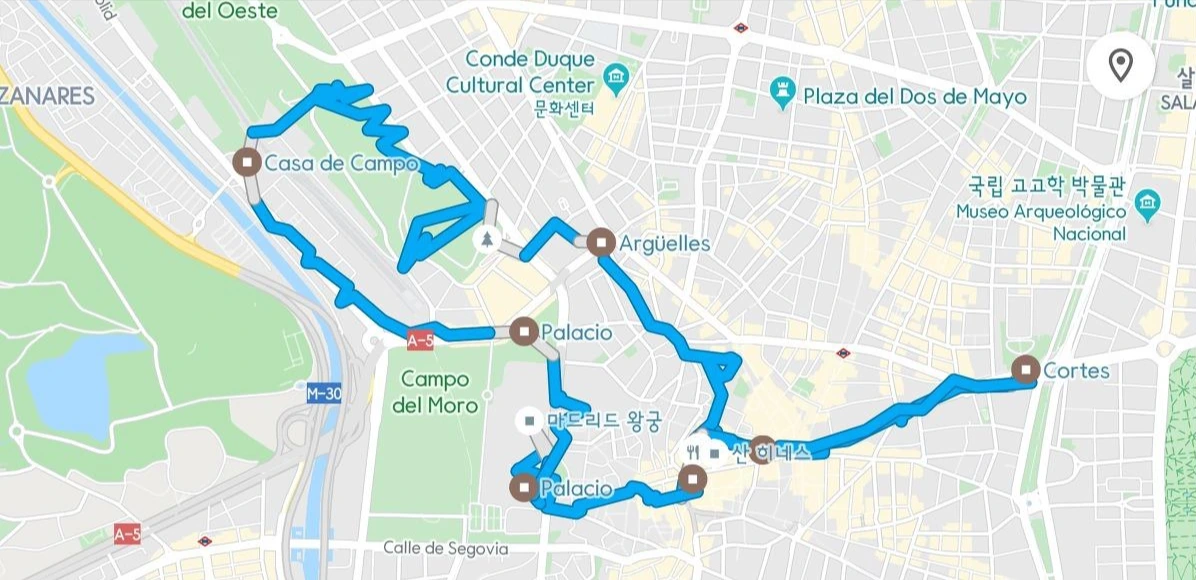 벌써 시간은 오후 5시에 가까워졌고 몸을 추스르면서 '마지막으로 딱 하나만 더 보고 들어가자'고 결심했다. 그렇게 고야의 프레스코화를 보기 위해 '성 안토니오 성당'으로 향했다. 구글 지도는 마드리드 왕궁에서 30분 정도로 예측을 했지만 가다 쉬다를 반복하며 가서 그런지 내 발걸음으로는 결국 1시간이나 걸렸다.