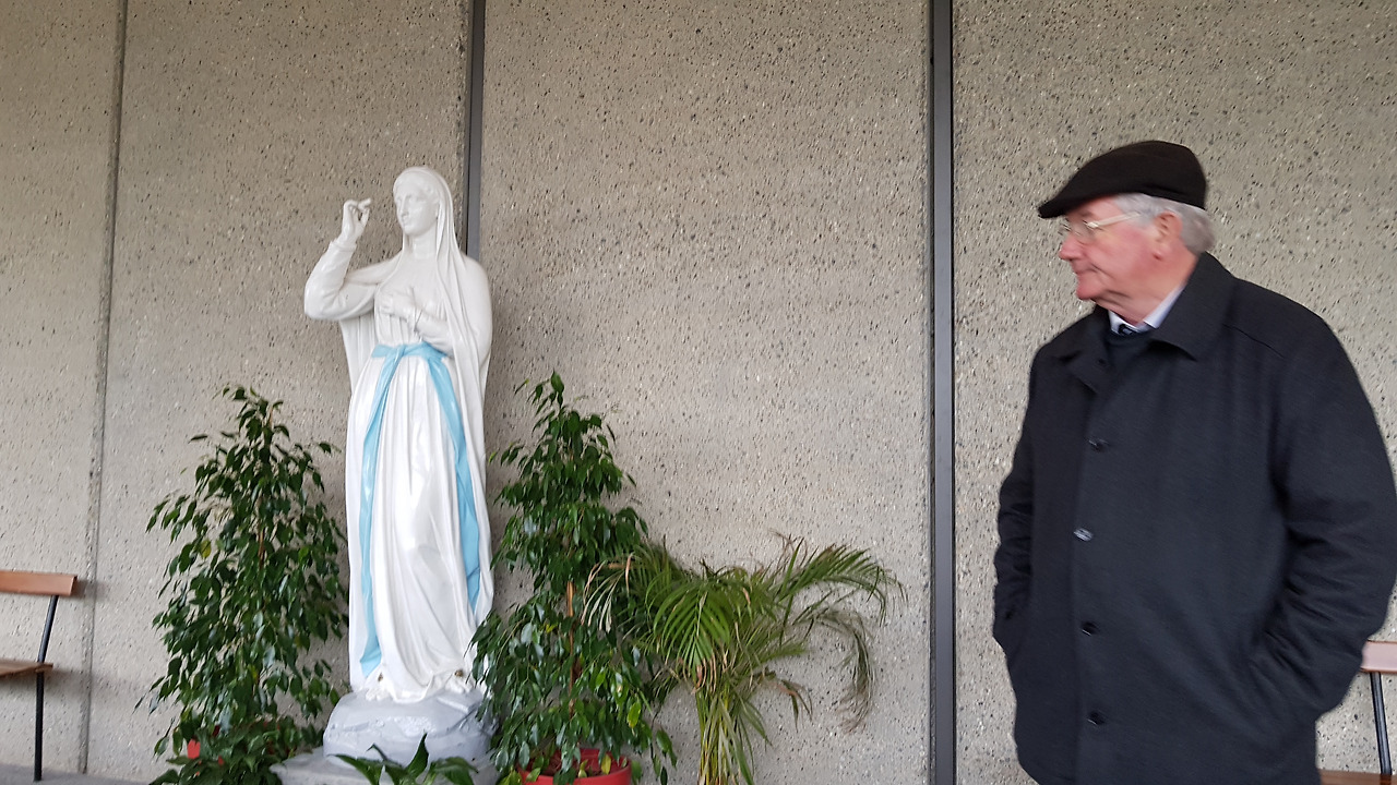 내부에는 베르나데트에게 나타난 성모님의 이야기가 그림으로 표현되어 쭉 걸려있었다. 수녀님은 이미 설명을 시작하고 계셨다. 다른 순례객들에게 방해가 될까봐 뒤쪽에 있는 성모상 옆에 걸터앉아 멀리 들려오는 수녀님의 이야기에 귀를 기울였다.