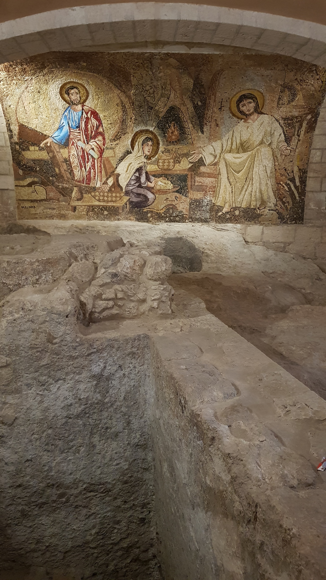 '주님 탄생 예고 성당' 옆 '성요셉 성당'에 들렀다. 이 두 성당 밑부분에는 예수님 시절의 나자렛의 모습이 연상되는 옛 지형이 그대로 노출되어 있었다. 깔끔하게 지어진 새것 느낌의 건물들 보다도 이렇게 군데군데 보이는 오래된 암석들이 더 좋았다. 예수님과 마리아, 요셉 가족이 여기 어딘가를 걷고 쉬고 머물렀을까. 목수 요셉의 작업실이 있었다는 성가정성당은 소박하고 아름다워서 그 이름과 꼭 어울리는 느낌이었다.