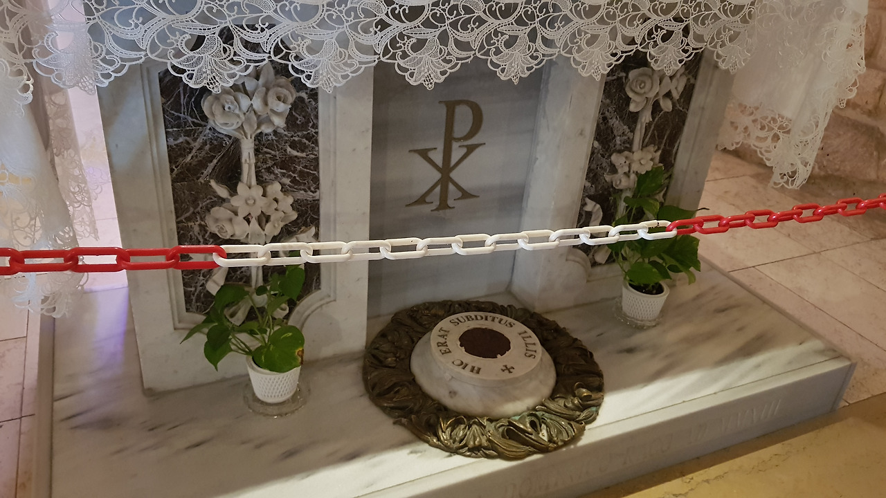 순례단이 미사를 드리는 곳 아래 동굴 제대에는 라틴어로 "VERBUM CARO HIC FACTUM EST" 즉, "The Word was made flesh here; 이곳에서 말씀이 사람이 되셨다"라고 쓰여있었다.