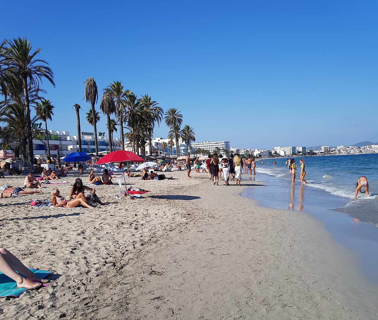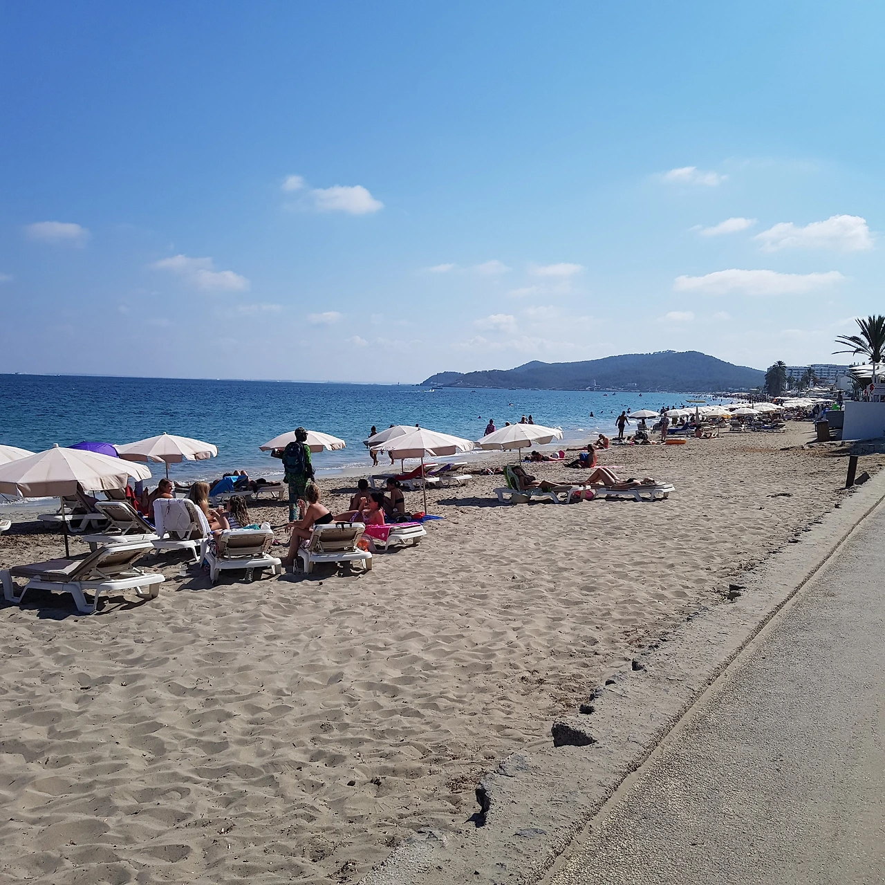 한여름의 스페인답게 창밖으로 보기에도 햇빛이 이글이글했다. 보트에서 젖을 테니 수영복을 입고 선크림과 선글라스, 모자로 무장을 했다. 어제 알아본 바로는 숙소에서 약간 떨어진 곳에 체크인 센터가 있고 그곳에서 프리 파티를 즐기다가 5시쯤 배를 탄다고 했다. 채비를 마치고 해변을 따라 걷는데 생각보다 거리가 꽤 멀었다. 뜨거운 햇빛에, 푹푹 빠지는 모래에, 어제의 피곤에.. P의 표정이 점점 구겨지기 시작했다. 아뿔싸!