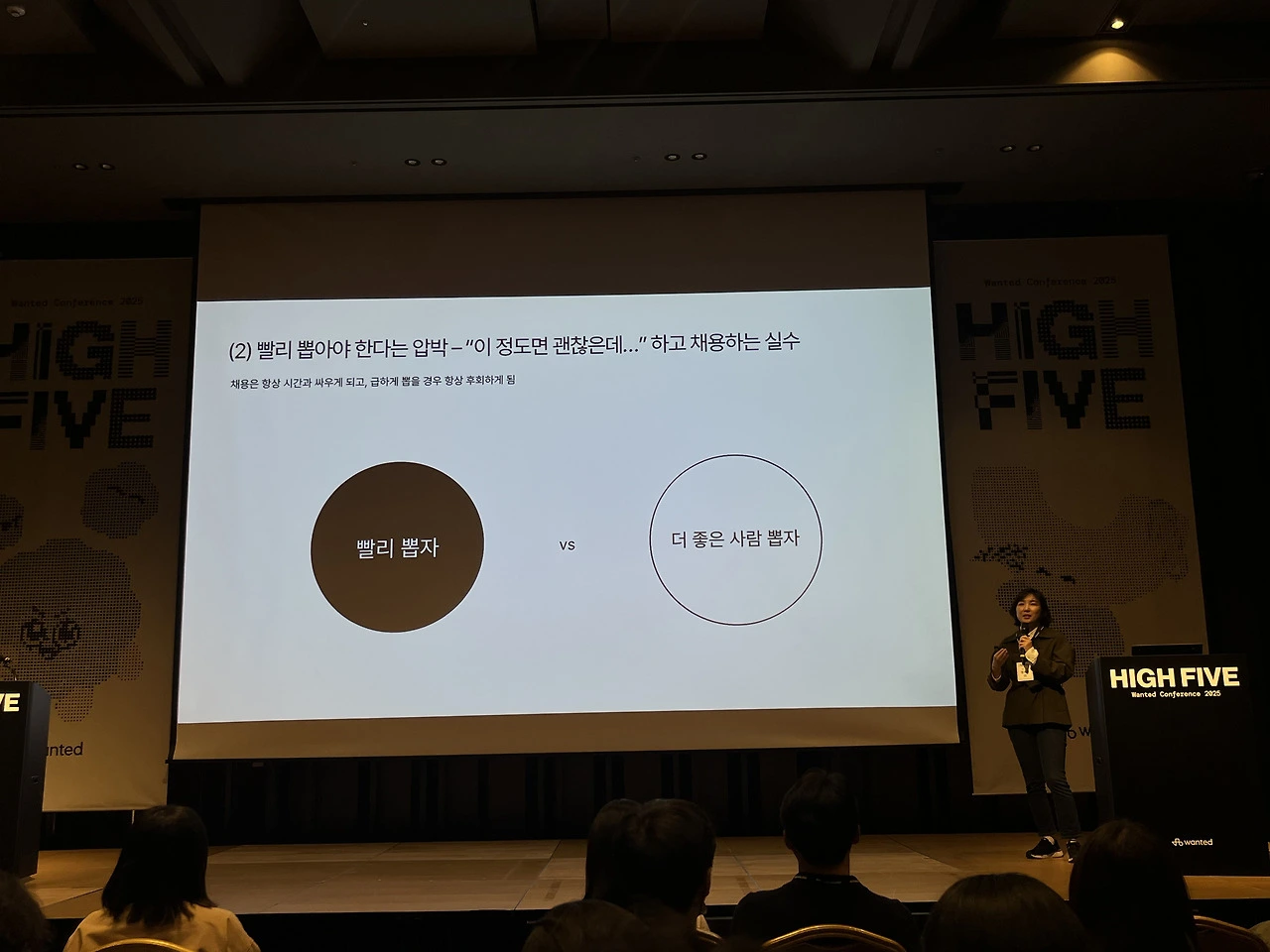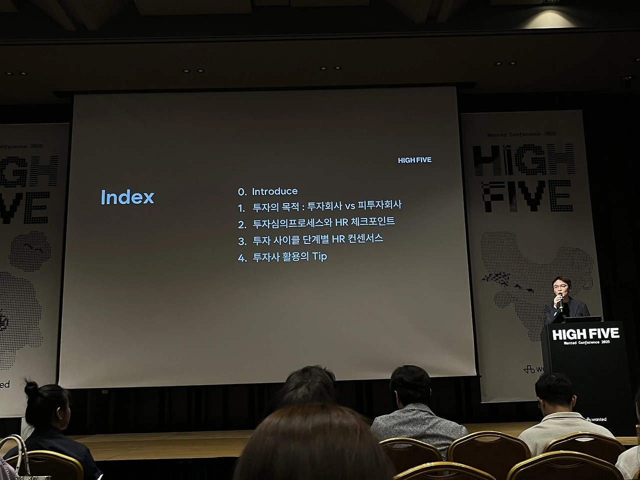 두번째 세션은 카카오인베스트먼트 경영지원실 박형민 실장님의 투자자 관점에서의 인사 전략이었어요. 불확실한 투자 시장 속에서, 창업자나 초기 팀이 어떤 HR 전략과 팀 구성으로 투자자에게 신뢰를 줄 수 있는지가 점점 더 중요해지고 있어요.