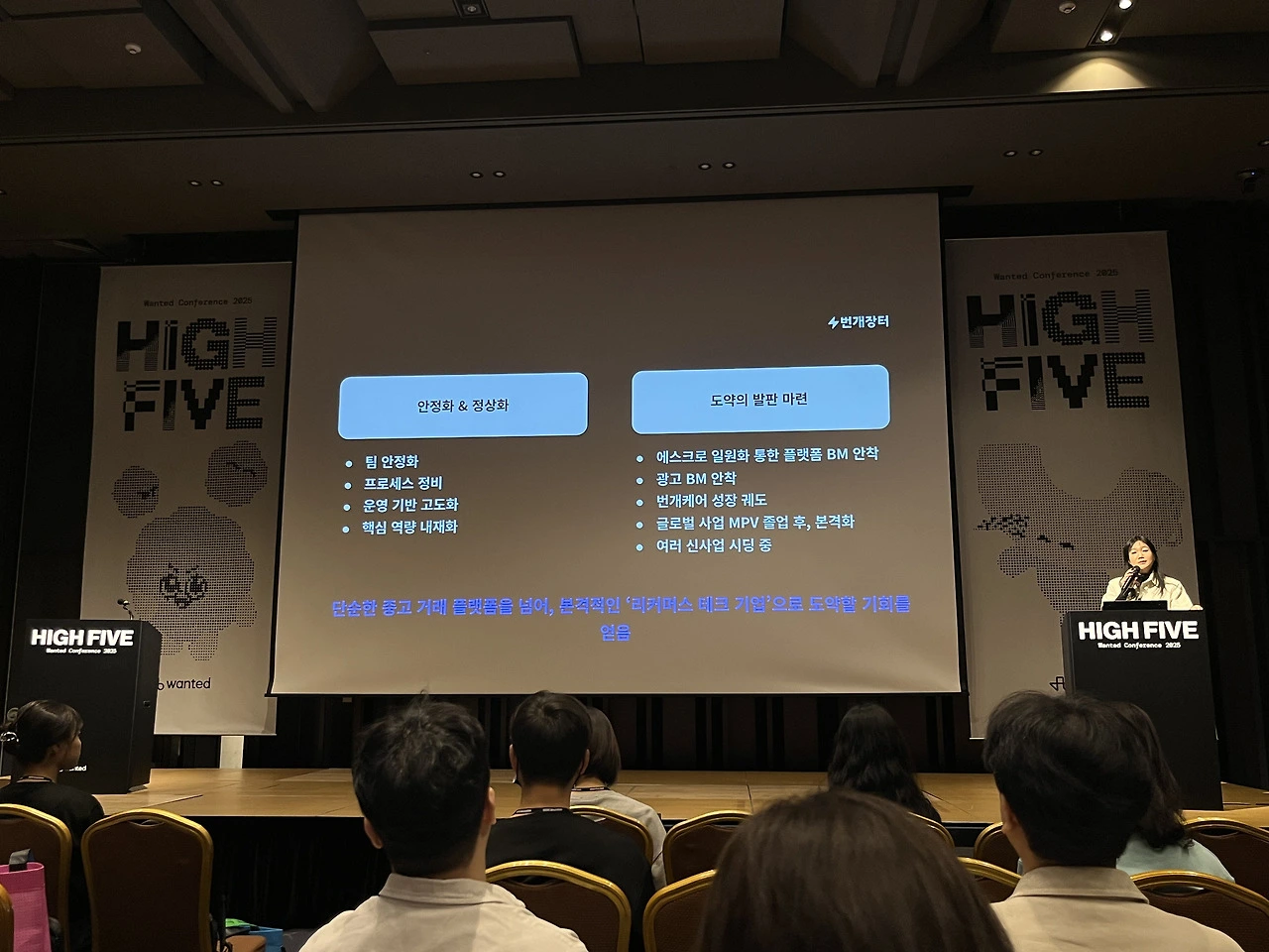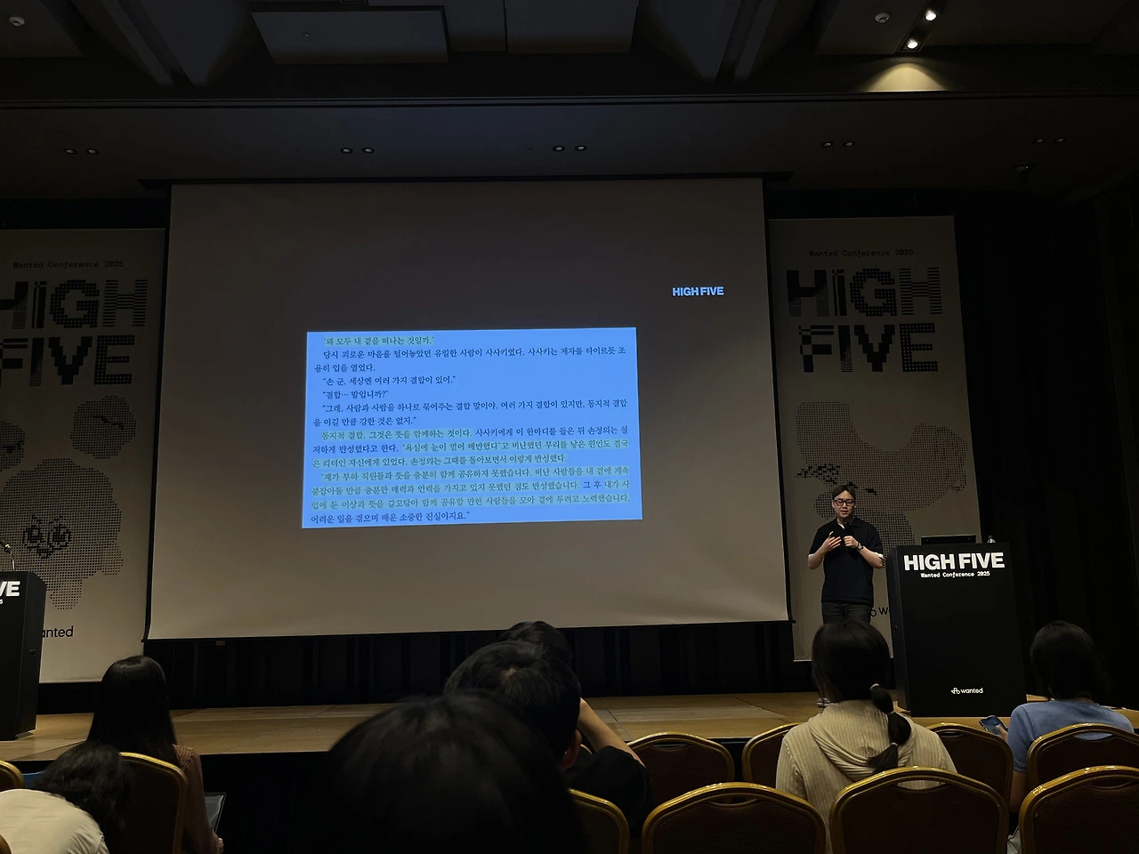 첫 세션은 번개장터 최재화 대표님이 전하는 조직의 문제 해결과 협업 문화에 대한 이야기였어요. 스타트업이 0 to 1을 넘어 1 to 100으로 나아가기 위한 치열한 여정이 진심으로 와닿았어요.