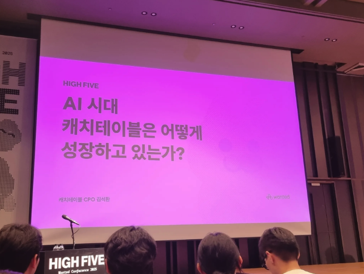 이번 컨퍼런스의 여섯번째 세션에서는 캐치테이블의 김석환 CPO님이 무대에 오르셨어요. 특히 인상적이었던 건, 팀원들이 직접 응원을 와서 발표를 지켜보는 모습이었는데, 이것만으로도 회사의 분위기와 팀워크가 얼마나 끈끈한지 느껴졌습니다.