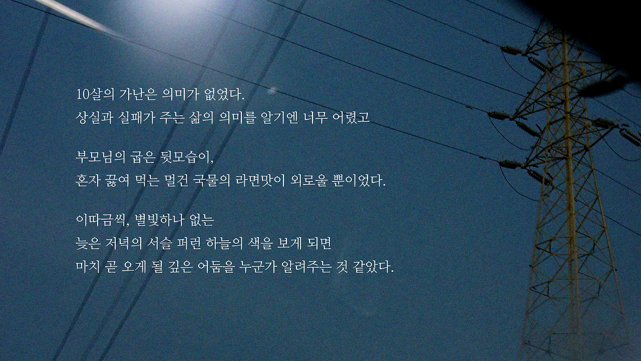 눈을 감고 잠에 들면 다음 날 깨지 않았으면 좋겠다는 생각을 매일 했다.