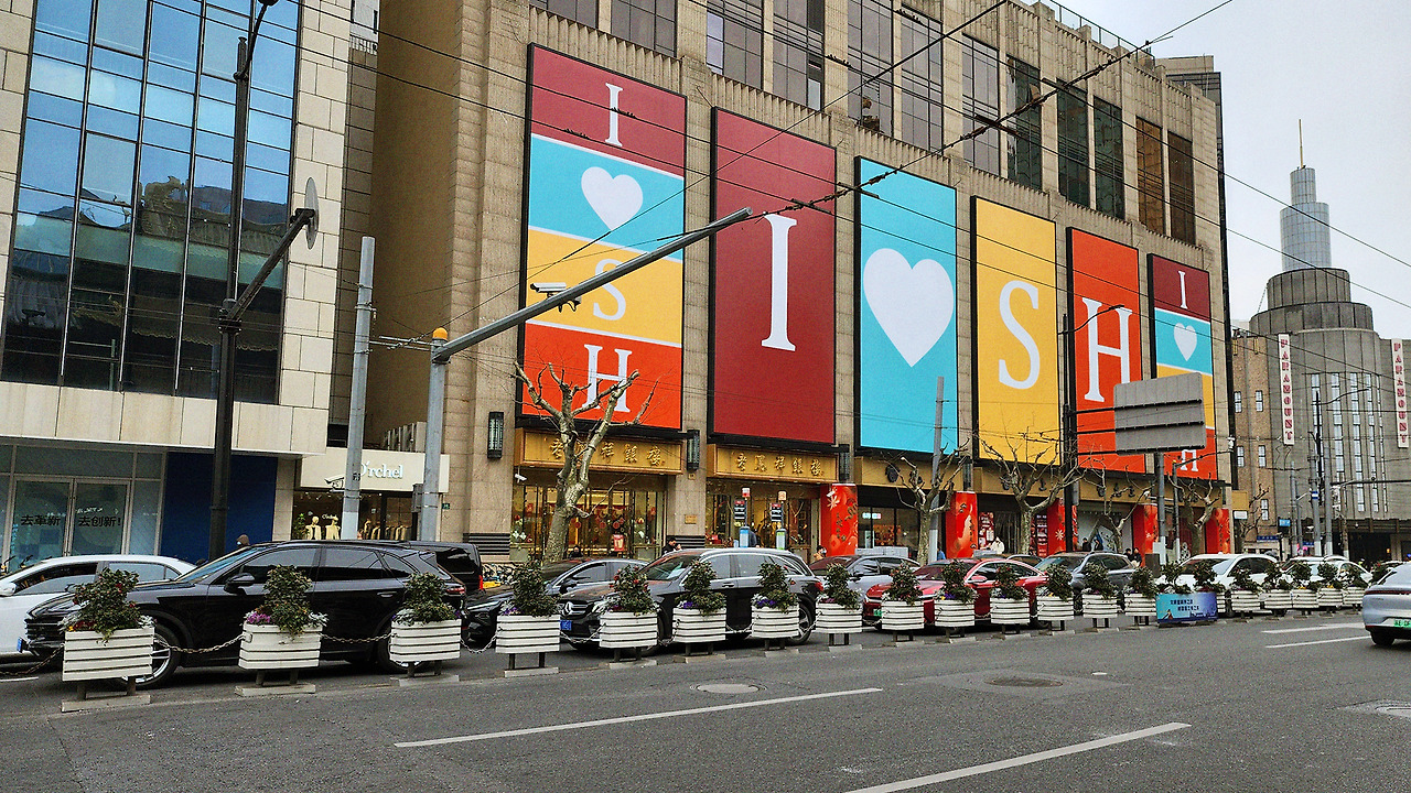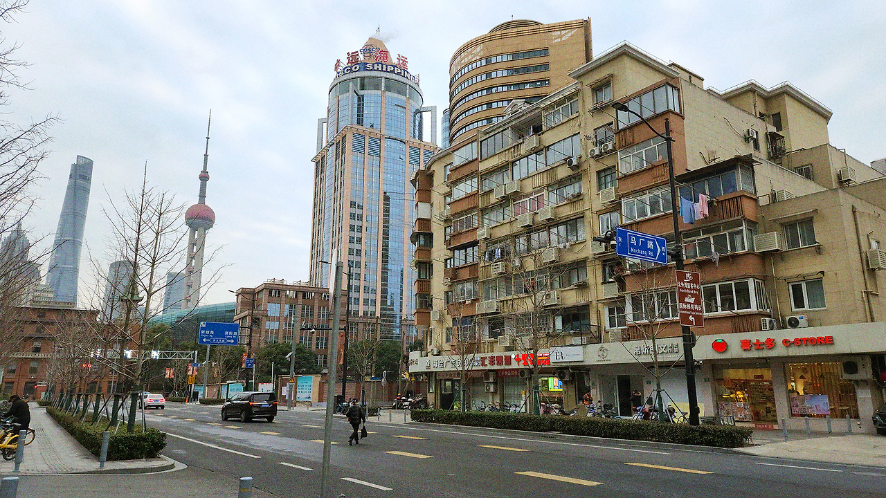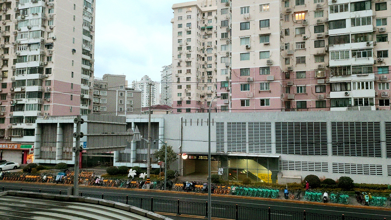 자동차보다 전기자전거와 스쿠터, 오토바이가 차도를 대부분 차지하고 있다는 것. 80-90년대에 멈춘 것 같은 빈티지한 외벽의 색감과 디자인의 아파트 건물들-낡고 허물어져 재개발이라는 단어가 떠오르기보다는, '단단하게 오랫동안 그 자리에서 상하이에 뿌리박힌 느낌'. 오래전부터 지금까지 있어왔고 있을 것이며 있어야 되는 시간의 흐름이 느껴지는 상하이 시민들의 주거지역이라는 느낌. 사이사이 보이는 세리프[Serif]의 두께감 있는 중국 한자들로 적힌 간판들. 그리고 그런 채도 낮은 공기와 분위기와 대비되는 도시의 요소들.