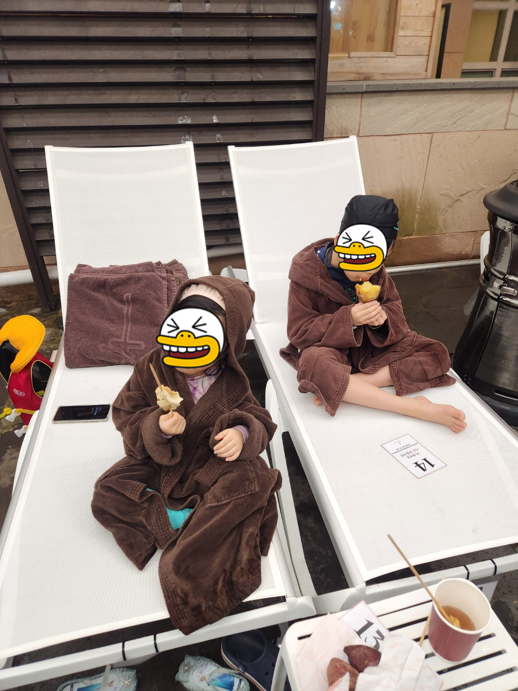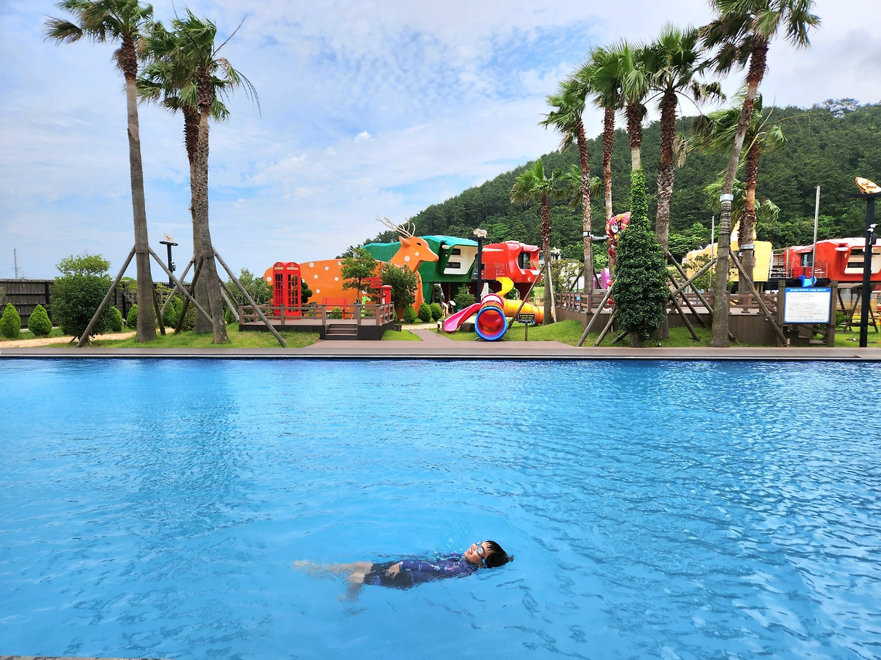 아빠 없이 여행을 가다 보니 수영장에서의 물놀이는 신경이 많이 쓰인다. 아이들 안전에 신경을 쓴다고는 하지만 둘을 동시에 봐주기도 힘들고, 무엇보다 둘의 의견이 맞지 않을 때는 정말 곤란하다. 하나는 물놀이를 계속하고 싶어 하고, 하나는 나가고 싶어 하는 경우.(우리는 두 녀석 터울차가 많은 편이라 특히 이럴 때가 많다.) 흰수염고래리조트는 1층 객실 발코니가 바로 수영장으로 연결되어 있어 발코니에 앉아 수영하는 아이를 바라볼 수 있다. 둘째가 낮잠을 자거나, 둘째가 물놀이를 안 한다고 할 때 수영하는 첫째를 방에서 편안하게 지켜볼 수 있다는 아주 큰 장점이 있는 숙소였다. 미취학아동이 즐길만한 놀이터와 방방, 여러 장난감들이 비치되어 있어 아이 동반 가족에게는 더없이 좋을 것 같은 숙소이다. 6월 평일에 10만 원 이하의 가격으로 아주 가성비 있게 머물렀던 숙소이기에 추천하지만 시설이나 룸상태는 다소 오래되었다 것을 고려해야 한다.