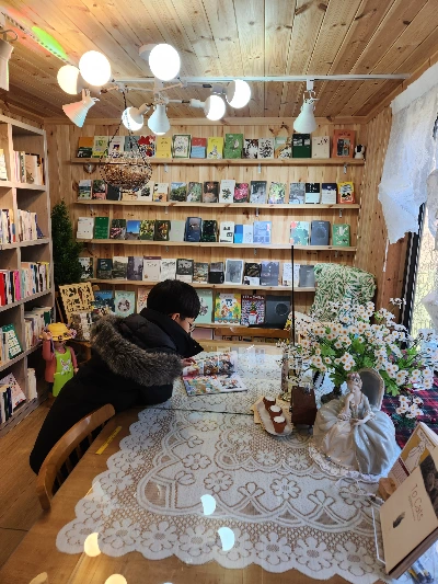 1년 만에 다시 찾은 책방은 여전히 따사로운 온기가 가득합니다. 차가운 바람을 쐬다가 책방 안으로 들어오니 몸도 마음도 스르르 녹아내립니다. 잔잔하게 흐르는 피아노음악과 곳곳에 느껴지는 사장님의 손길들이 책방 분위기를 훨씬 더 평온하게 해 줍니다. 한번 쓱 둘러본 책방은 여전히 사장님의 골라두신 책들로 가득 차 있습니다. 구석구석 어떤 책들이 있나 구경하는 것만으로도 참 좋습니다. 이렇게 책이 가득한 공간에 우리 밖에 없느니 책을 골라 아무 곳에나 철푸덕 앉아 책을 봅니다.