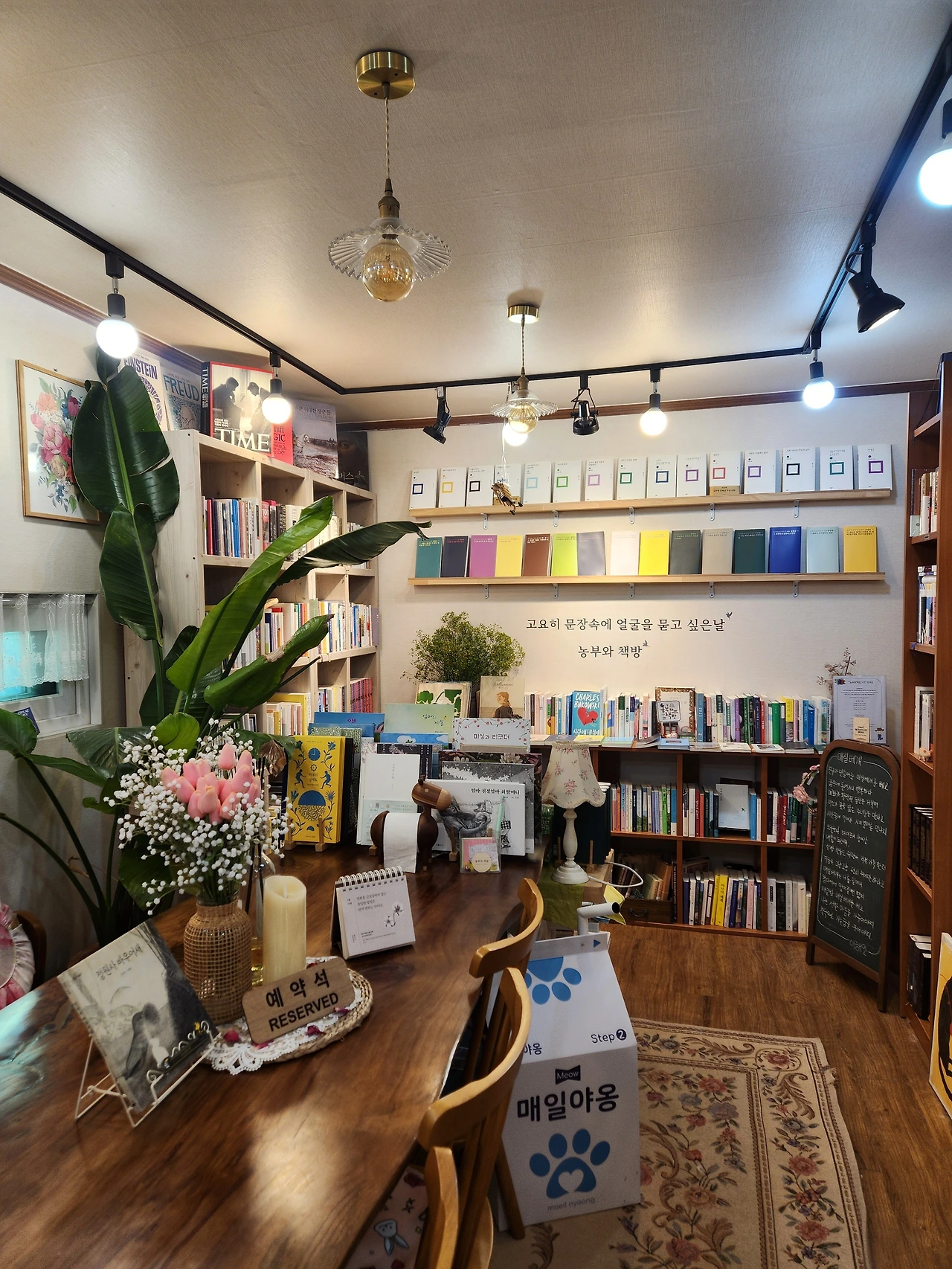 이곳은 책방주인인 사장님과 농부이신 사장님의 남편분이 함께 운영하시는 곳입니다. 농부가 계시니 책방 앞에는 작은 텃밭도 있습니다. 여름에 가면 초록초록하고 싱그러운 텃밭도 덤으로 누릴 수 있다고 하네요.