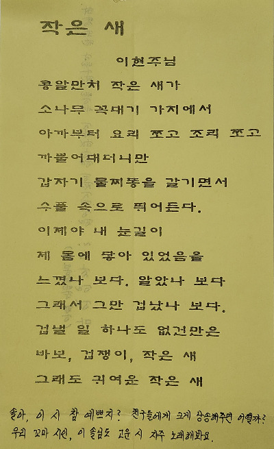 아이들이 동시를 노래처럼 좋아했던 때였기에 그 마음 사라질세라, 새로운 동시를 만나면 잘 챙겨두었다가 필통 편지에 자주 써주었지요.