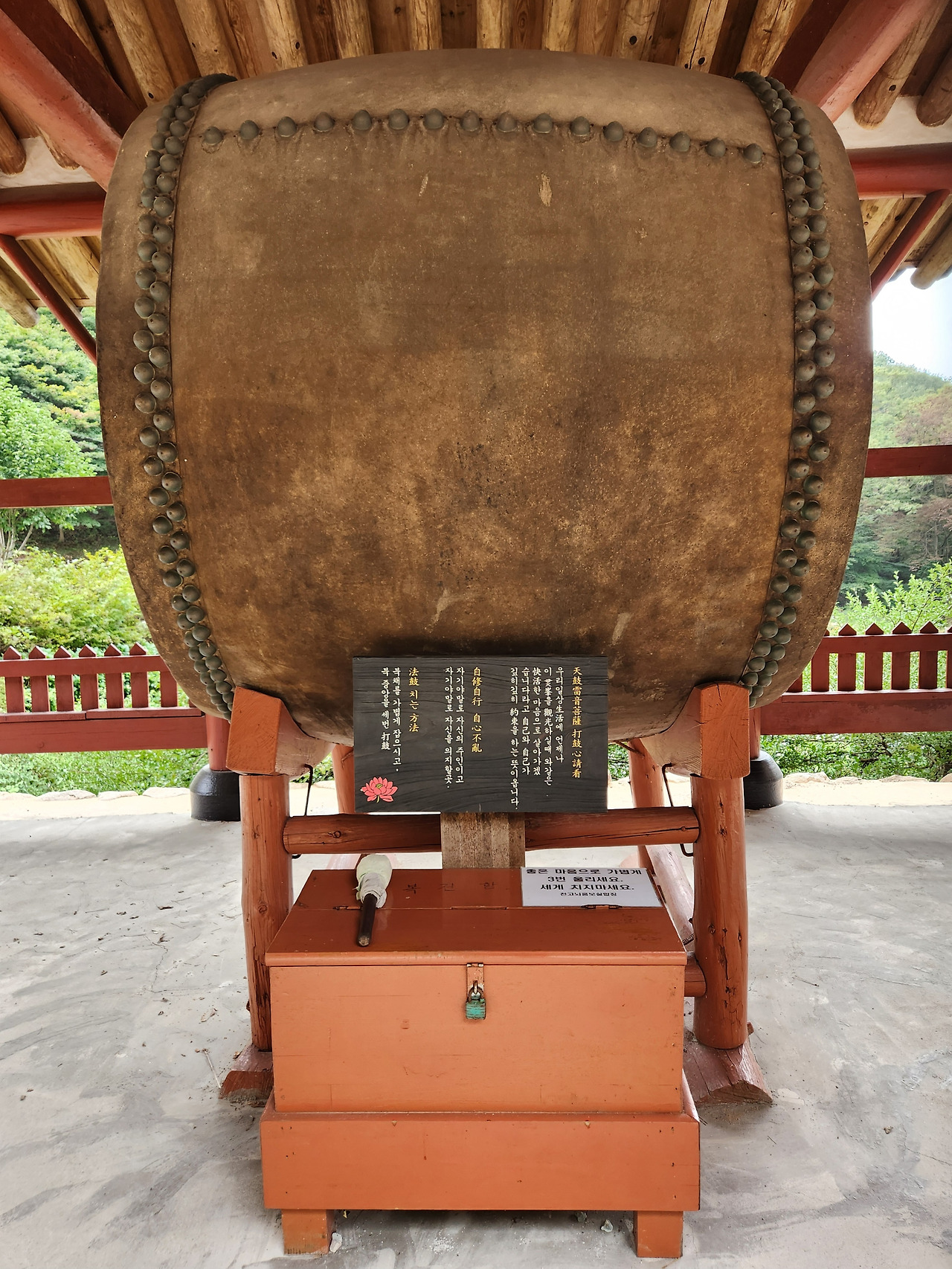 탑사에서 다시 조금 더 올라가면 고즈넉한 분위기의 은수사가 나온다. 그곳에는 천연기념물로 지정된 640살 먹은 청실배나무가 있다. 조선 태조 이성계가 마이산을 찾아 기도를 마친 뒤 증표로 심은 씨앗에서 자랐다고 알려져 있다. 마침 여기저기 떨어진 배가 눈에 띄어 하나를 주워 베어 물었다. 싱그러운 향이 퍼지며 들큼한 맛이 느껴졌다. 발걸음은 이어서 자연스럽게 법고 앞으로 이어진다. 이곳에서는 누구나 북을 치며 소원을 빌 수 있다. 여기 올 때마다 늘 그렇듯 남편이 큰 법고 앞에 서더니 둥, 둥, 둥 세 번 북을 울린다. 나도 자동적으로 북소리에 맞춰 두 손을 모으고 ‘살아 있는 것들은 모두 다 행복하라’는 기원과 함께 세 번 허리 숙여 절한다.