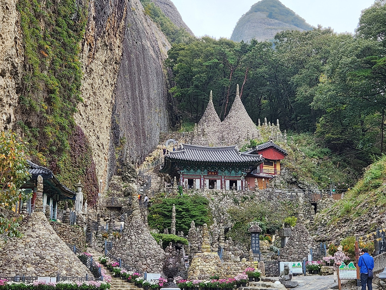 은수사 옆을 돌아 324개의 계단을 오르면 암·수마이봉 사이의 고갯마루, 천왕문에 이른다. 이곳에서 암마이봉의 진짜 오르막이 시작된다. 평소 ‘따로 또 같이’를 외치는 부부답게, 등산 초입에서 남편에게 나는 내 속도에 맞게 올라갈 테니 신경 쓰지 말고 먼저 올라가시라고 했다. 심호흡을 크게 한 후, 앞서 걷는 남편 뒤를 따라 힘차게 첫발을 내디뎠다.