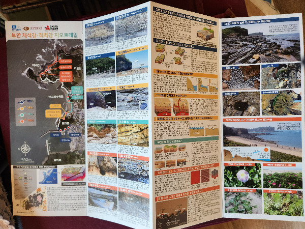 이어서 K꽃잎의 코냑이 다시 등장했다. 네 꽃잎은 목안의 뜨거움을 즐기며 닭이봉 지질 전시관에서 챙겨 온 팸플릿을 펼쳤다. 본격적인 '팸플릿 부안 지질 탐사'가 시작된 것이다. 팸플릿에는 부안 지질의 형성 과정과 다양한 지질 용어 설명, 그리고 지질 명소가 소개되어 있었다. 다들 노안에 접어든 눈으로 깨알 같은 글씨를 서로 돌아가며 읽어내고, 모르는 것은 또 묻고 찾아보느라 그날 밤도 하마터면 하얗게 지새울 뻔했다.