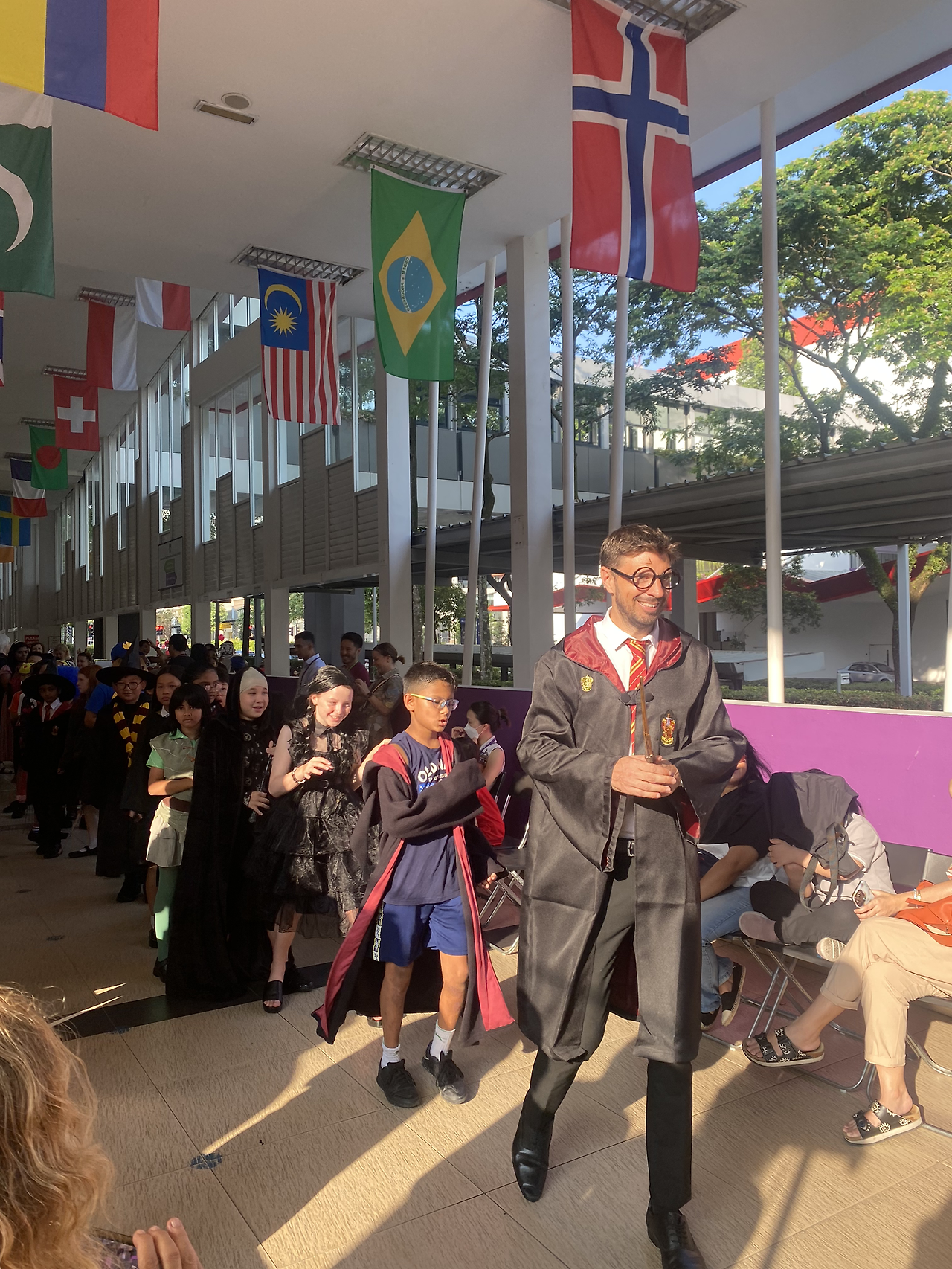 아이들은 본인이 선택한 책 캐릭터로 분장하고 퍼레이드에 참가한다. 어찌보면 할로윈 코스튬 같아보이기도 하지만 어쨌든 북 캐릭터를 기반으로 꾸민다는게 다른 점이다. 리셉션(유치원)부터 12학년까지 반 별로 차례로 입장하는데 담임 선생님과 아이들이 한 가지 주제를 정하고 옷을 맞춰입기도 하고, 아이들을 보는 재미도 있지만 분장에 진심인 선생님들의 코스튬이 제대로인 것 같아 보는 즐거움이 있었다.