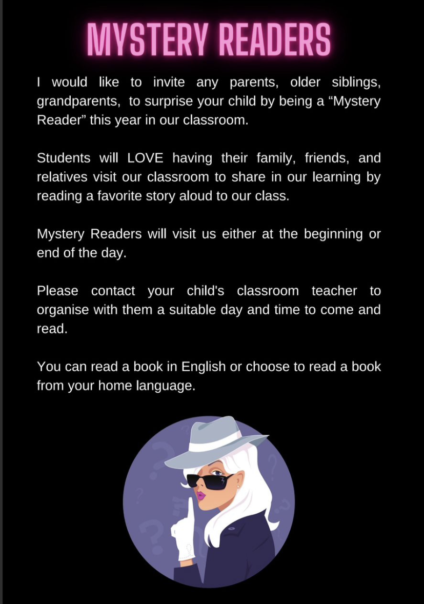 마지막으로 미스테리어스 북 리더는 선생님이 준비한 몇 가지 재미난 이벤트가 있기도 하고, 가장 하이라이트는 부모님 자원으로 아이들 반에 가서 모국어로 책을 읽어주는 시간이 있다는 것이다.