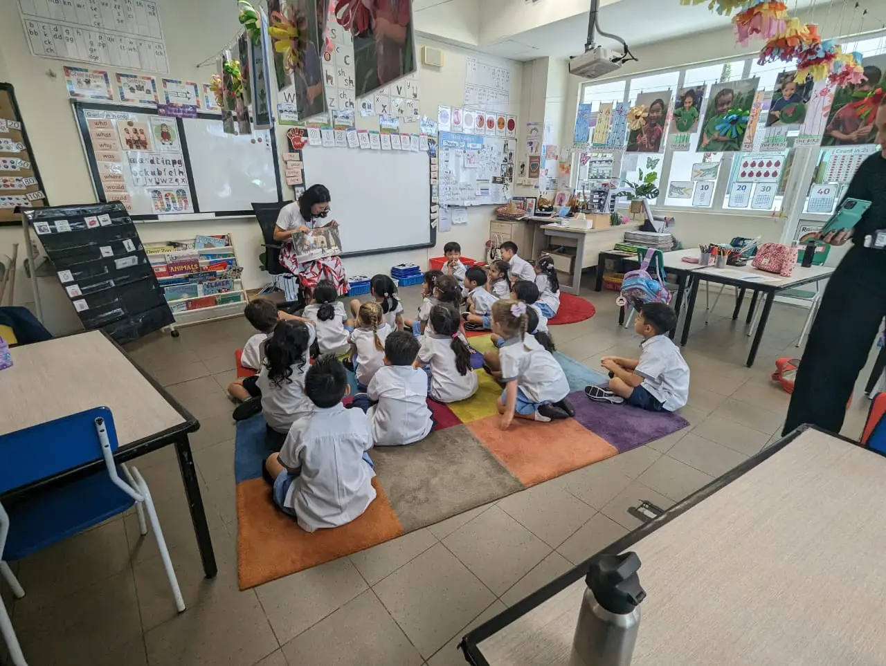 두번째는 바로 선생님이 아이들에게 책을 읽어준다는 것이다. 수업 시간 중 여유가 있을때 교실 앞 카페트에 아이들이 옹기종기 모여 앉으면 선생님이 책을 읽어주신다. 일주일에 한 번 있는 도서관 시간에도 그 곳에 가면 아늑한 동굴 같은 공간에 들어가 또 다같이 모여앉아 사서 선생님이 읽어주시는 책을 듣는다.