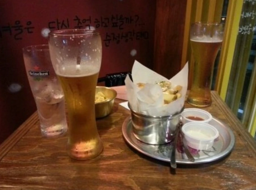 크림 생맥주 2잔과 감자튀김을 주문한 후, 그는 마치 오늘 아무 말도 듣지 않은 것처럼 밝게 이야기 했다. 학교에서 있었던 일, 오늘 카페에 온 진상 손님 이야기….