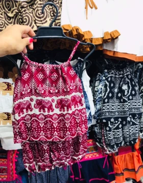 가까이 가보니 사장님께서 옷걸이에 아동용 원피스를 여러 벌 걸어두고 판매하고 계셨다.