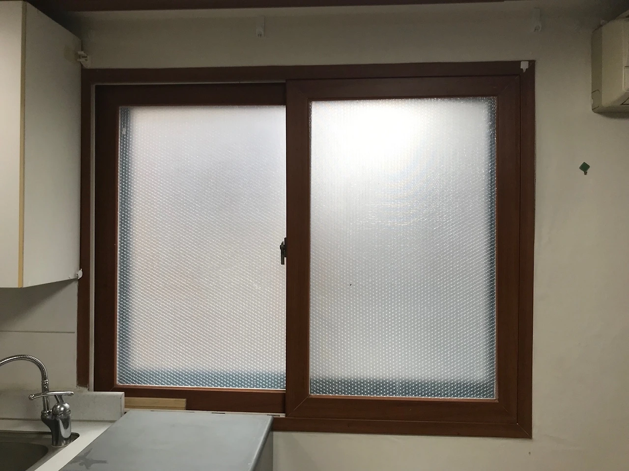 몽글의 창문에 내가 붙였던 뾱뾱이, 덕분에 겨울을 잘 보냈다