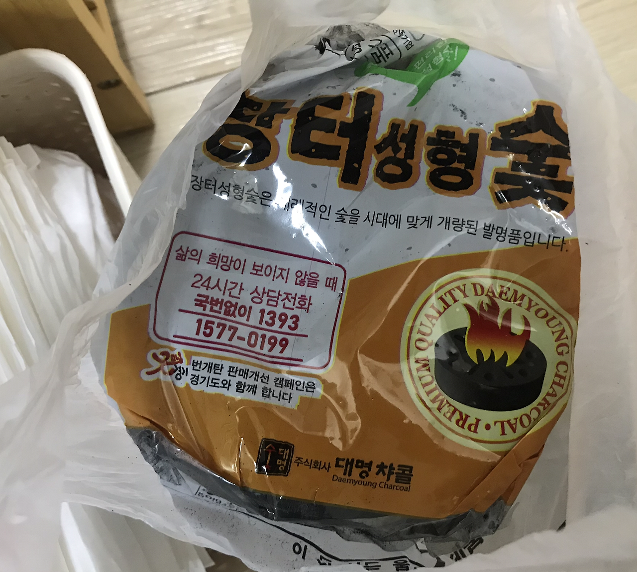 몽글이 산 번개탄에는 24시간 상담전화 번호가 적혀 있었다.