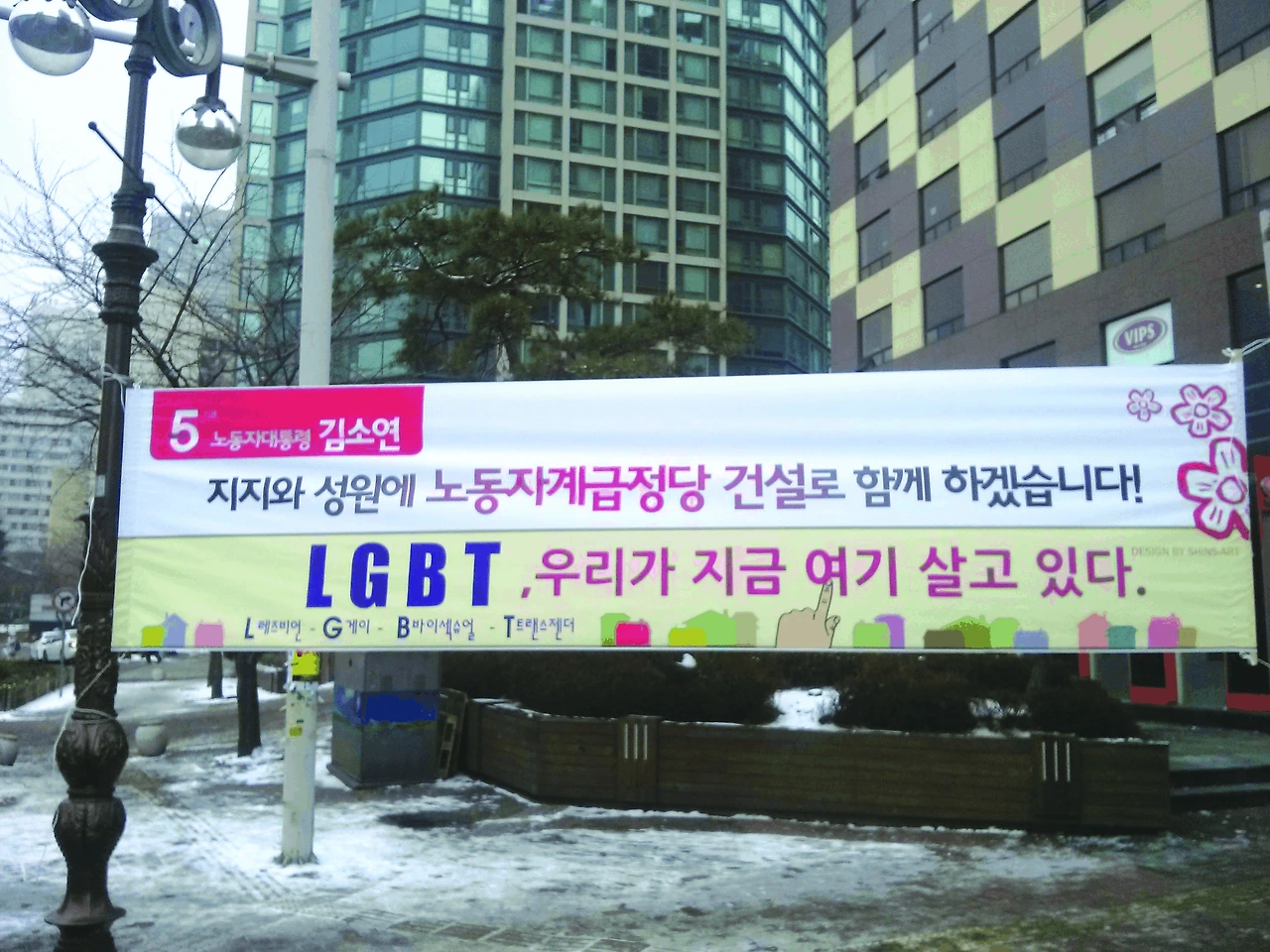 마포구에 걸렸던 현수막. LGBT, 우리가 지금 여기 살고 있다.