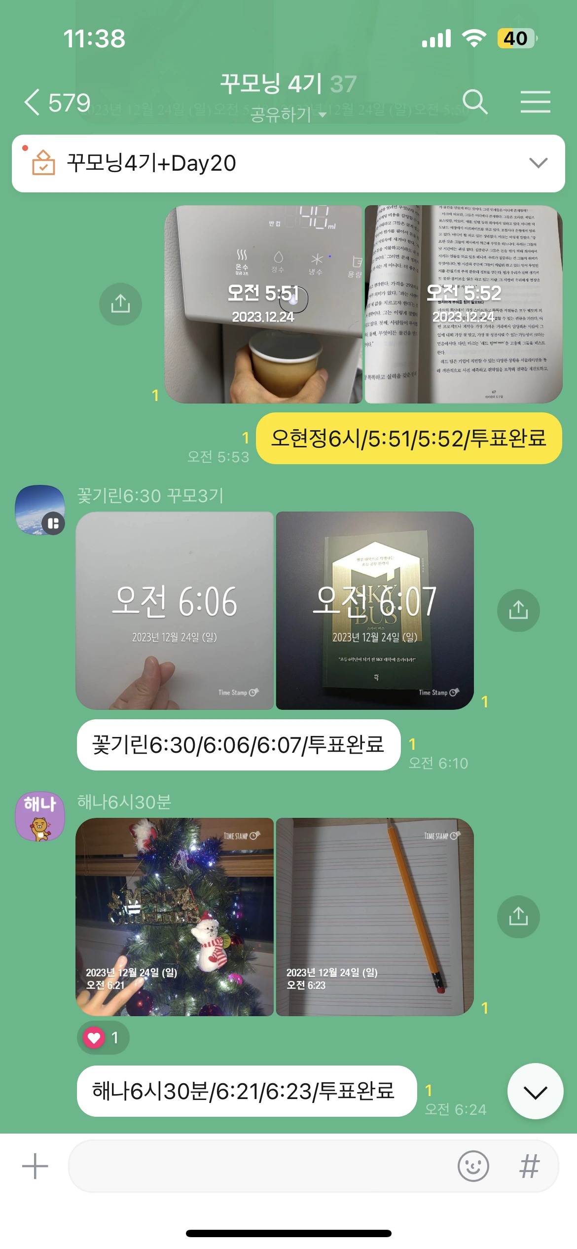 아침에 일어났다는 인증사진 2장을 차례로 올리고, 단톡방 투표에 성공했다고 인증을 하면 드디어 성공이다