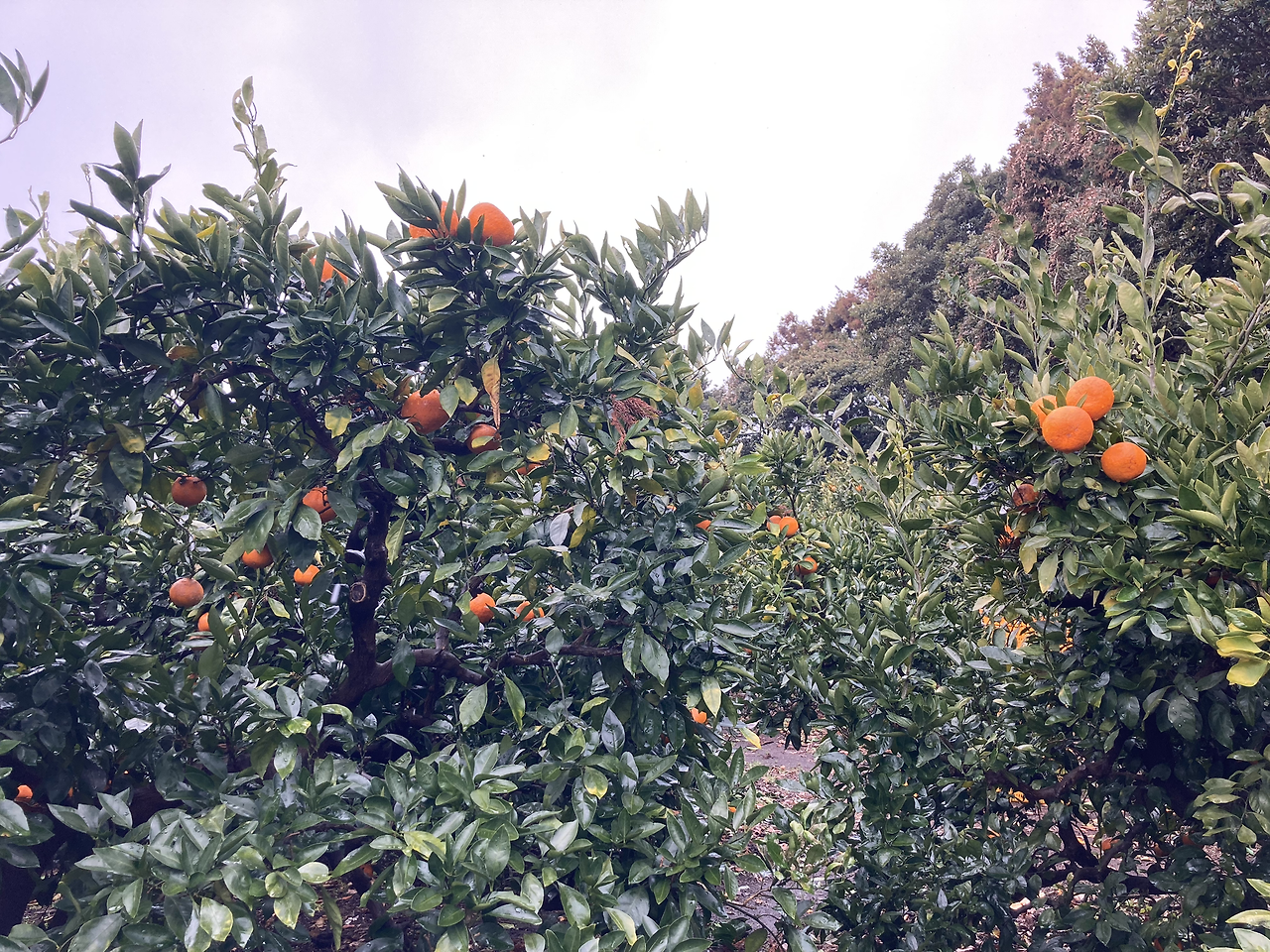 차를 10분 남짓 달렸을까 길가에 귤밭들이 주르륵 이어져 있다. ‘귤체험’이라는 플랭카드를 보고 적당한 곳에 차를 멈추었다. 주인 아주머니가 주신 바구니를 안고 귤밭으로 총총 들어가 본다. 초록 싱그러운 잎새 아래 선명한 주황생 귤이 주렁주렁 매달려 있다. 똑 똑 하나씩 바구니에 귤을 담느라 아이들은 너무나 신이 났다. 역시 체험을 좋아하는 초등들이다. 갓 딴 귤은 역시 새콤달콤 향기도 그만이다.