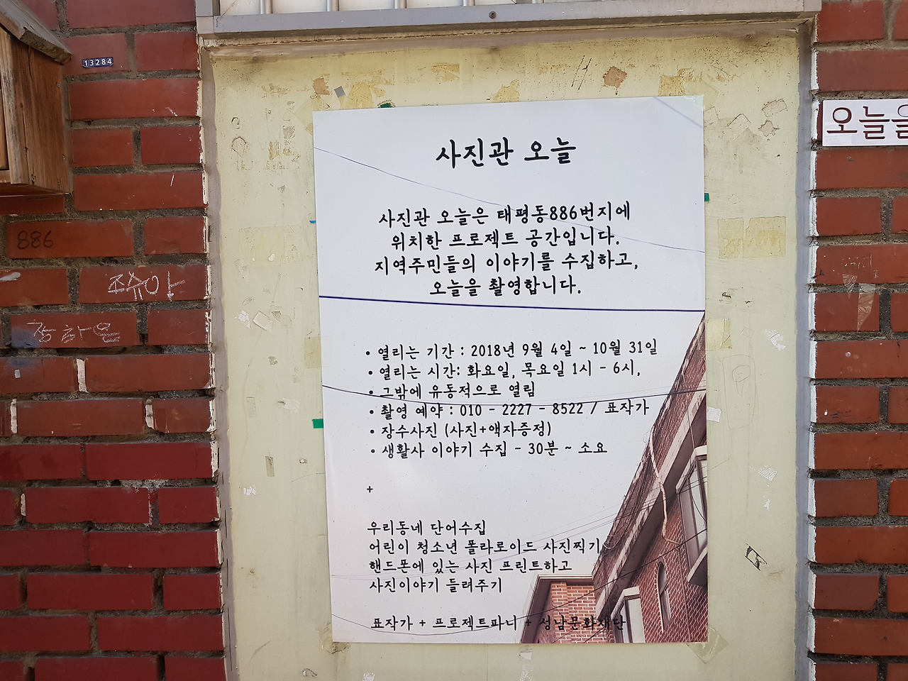 <사진관, 오늘> 역시 성남문화재단의 우리 동네 예술프로젝트 사업의 일환으로 활동하고 있는 곳이다.