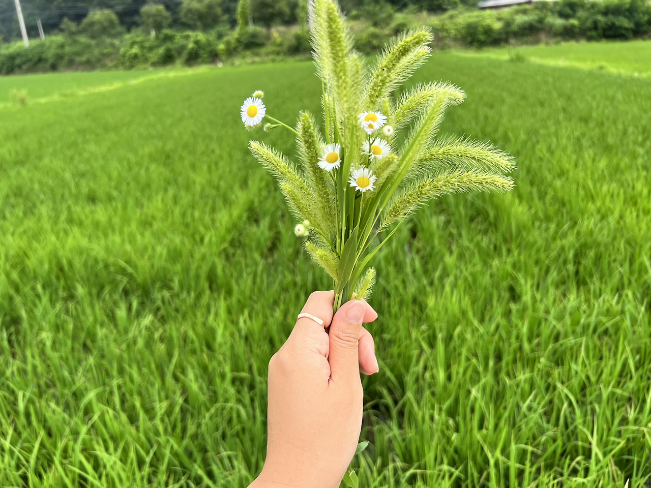 ’너무 멀리 온 게 아닐까?‘ 하며 뒤돌아 보던 지우가 나를 발견하고는 두 팔을 벌리고 뛰어왔다. 행복과 비례한 지우의 입모양도 함박웃음으로 동그랗게 번졌다. 지우는 손에 꼭 쥔 강아지풀 꽃다발을 나에게 주었다. 할아버지가 엮어준 것이라 하였다. 엄마가 좋아하는 꽃이지, 하면서.