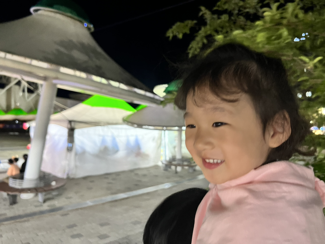 아이스크림이 다 녹을 때 쯤 공연장 안으로 들어갔다. 이름 모를 트로트 가수들의 공연이 이어졌다. 쩌렁쩌렁 스피커 소리가 가슴통을 두드리는 공연장에서 지우는 한참 뛰어놀았다. 요상한 춤도 추고, 넘어지기도 했다. 하늘하늘 찰랑이는 바다 위에 닻을 내린 조각배처럼, 내 시야 안에서 자유로히 떠다녔다.