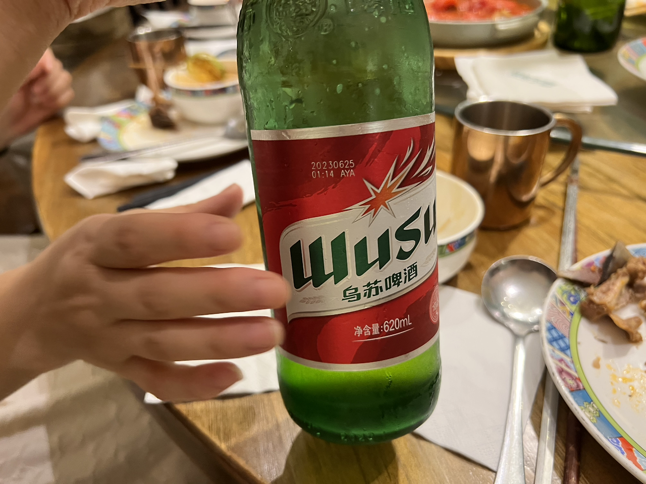 wusu 맥주는 중국 신장지역에서 만들어지는 맥주이다. 양꼬치 역시 신장의 대표적인 먹거리라, 둘의 조합이 자연스럽다. 칭따오보다 목 넘김이 부드러워서 다가오는 가을이 더 어울린다.