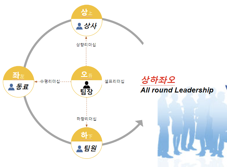> 상하좌오 리더십 / 신뢰, 소통, 업무를 잇다