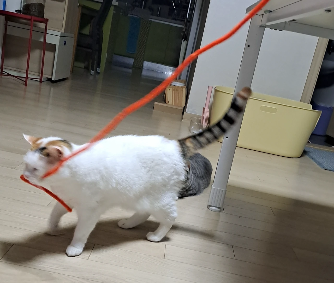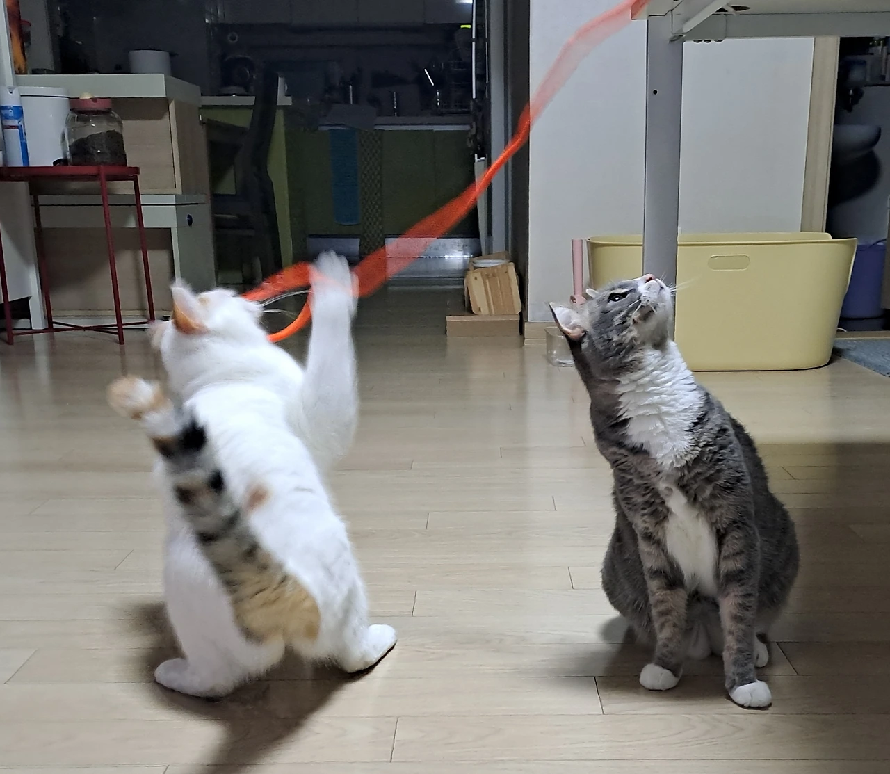 그래, 사냥은 별이 몫이고 사냥놀이 후 간식은 함께 즐기니까 옆에서 동참하는 것만으로도 의미는 있네.