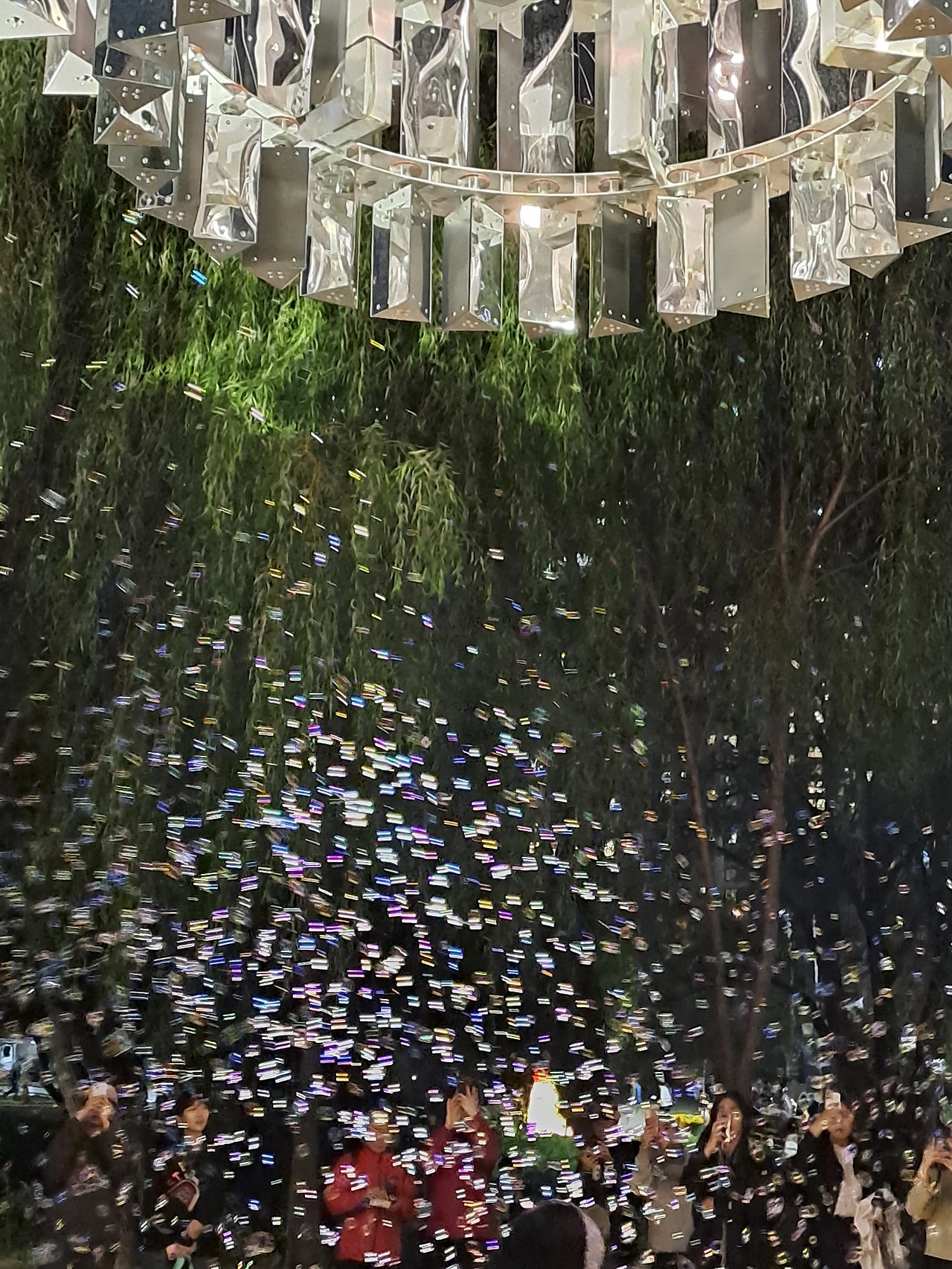 가장 아름다웠던 순간의 나와 만나는 순간이라는 제목의 빛과 비누방울 퍼포먼스