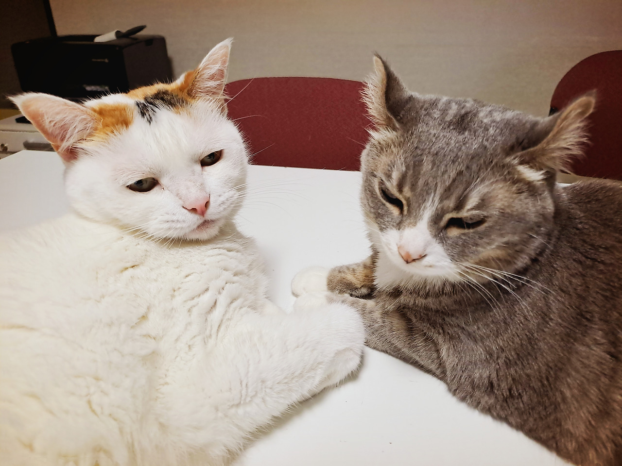 고양이들은 사람이 보기에 못 생겨 보일 때 가장 편안한 상태라 한다. 보기 힘든 투샷을 힘들게 건졌다.