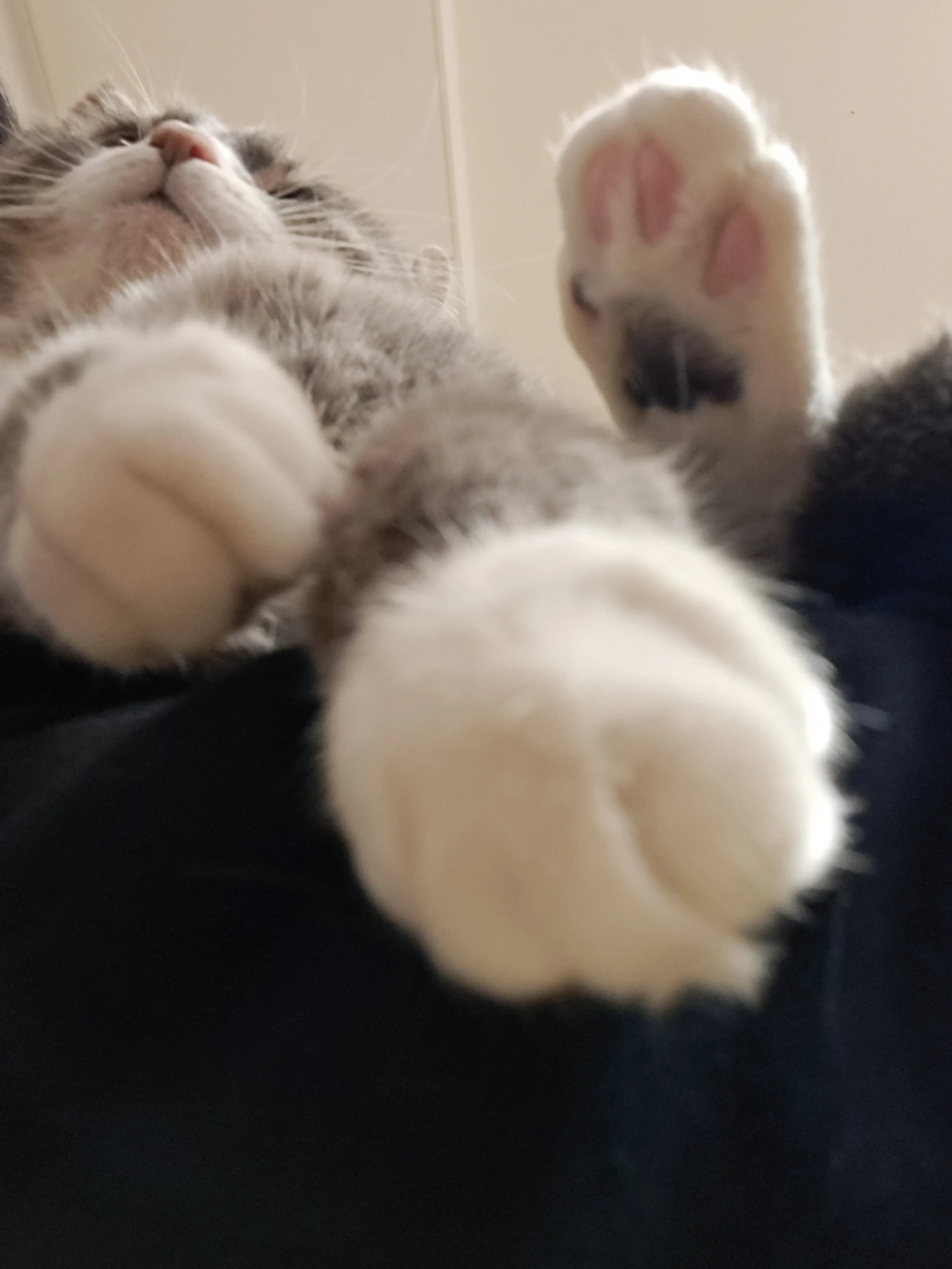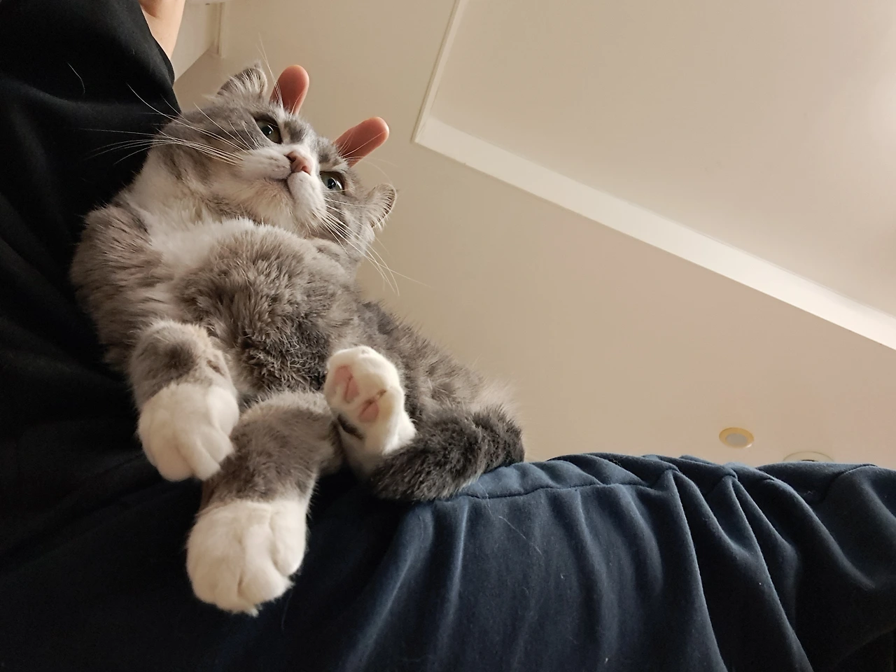 별이-하얀 냥이- 는 최근 1년간 무릎에 올라온 일이 없었다.냥춘기인가 했다. 그런데 어쩐 일로 무릎에 올라와서 잠을 청하고 있다. 구름이-회색냥이 -는 늘 사람 옆에서 치근덕 거리는 게 취미이자 특기이다.