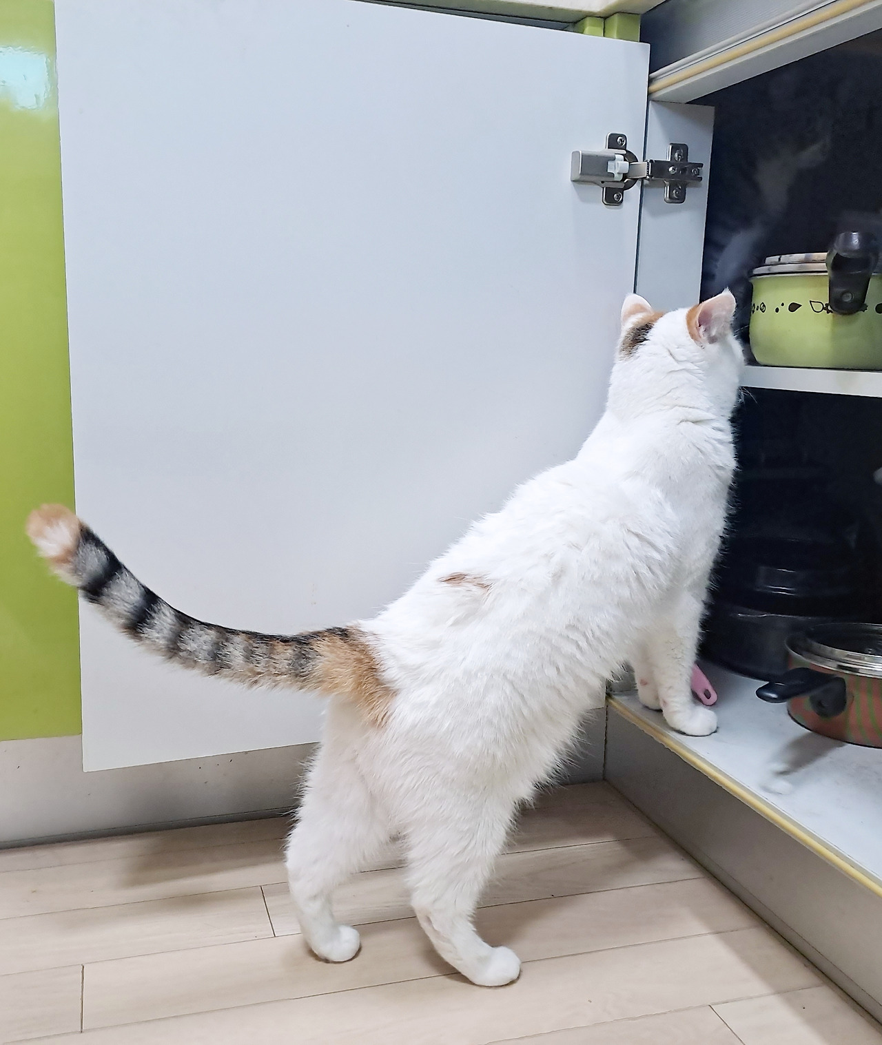 부엌은 놀이터가 아니야. 캣타워에서 놀아줘.